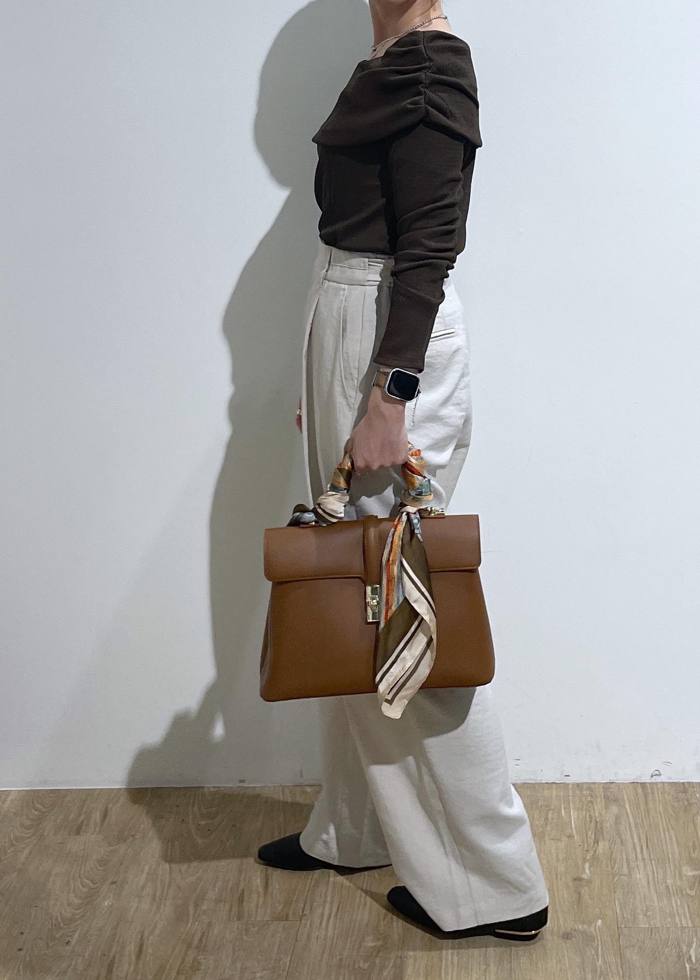 アレンジしやすい大きさなのでスカーフアレンジができます。1枚あればアクセントにもなるのでとてもコーデの幅は広がります。