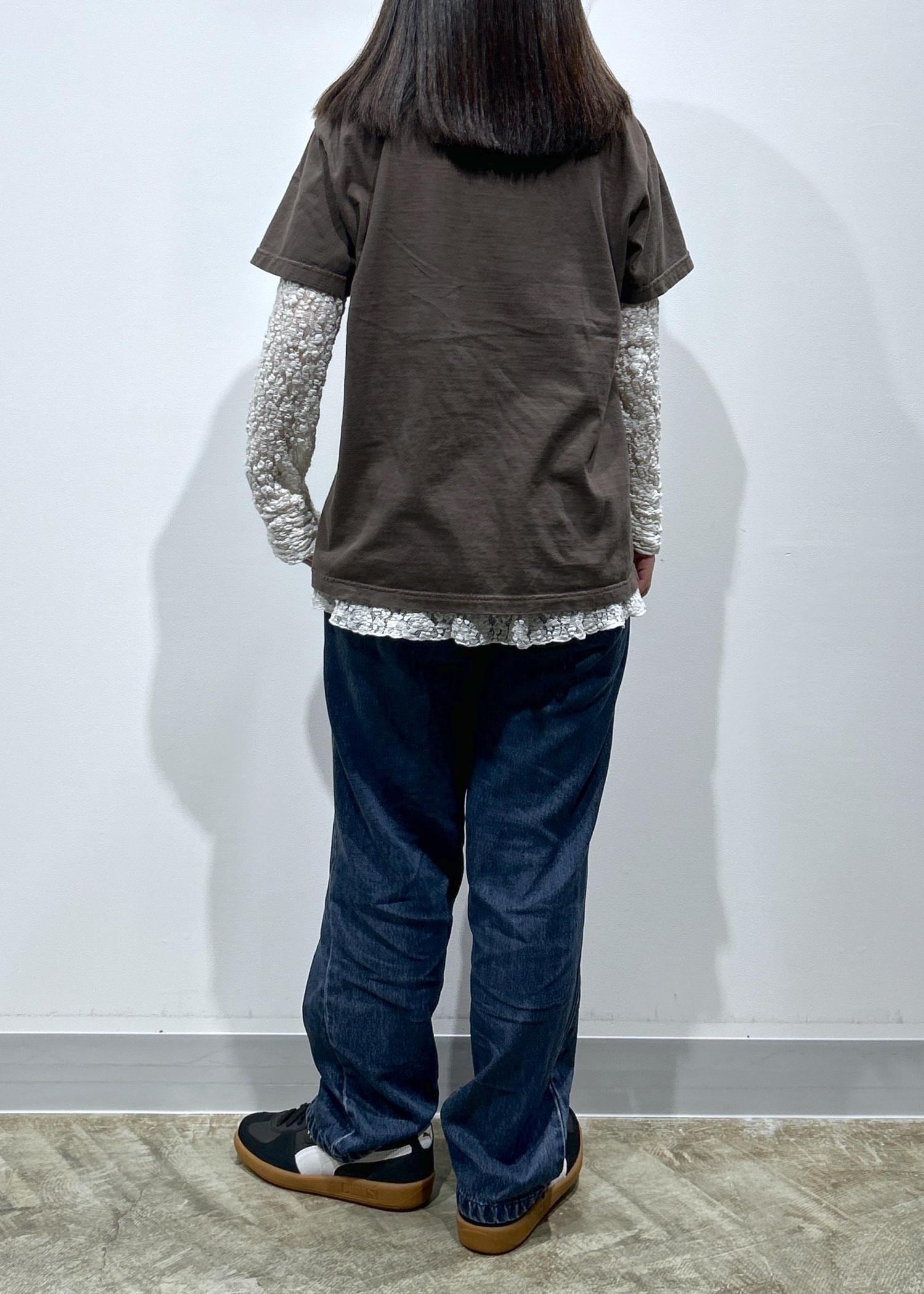 ゆるっとしたサイズ感ですが、オーバーサイズ過ぎずジャケットなどのインナーにも使いやすいサイズ感です! -