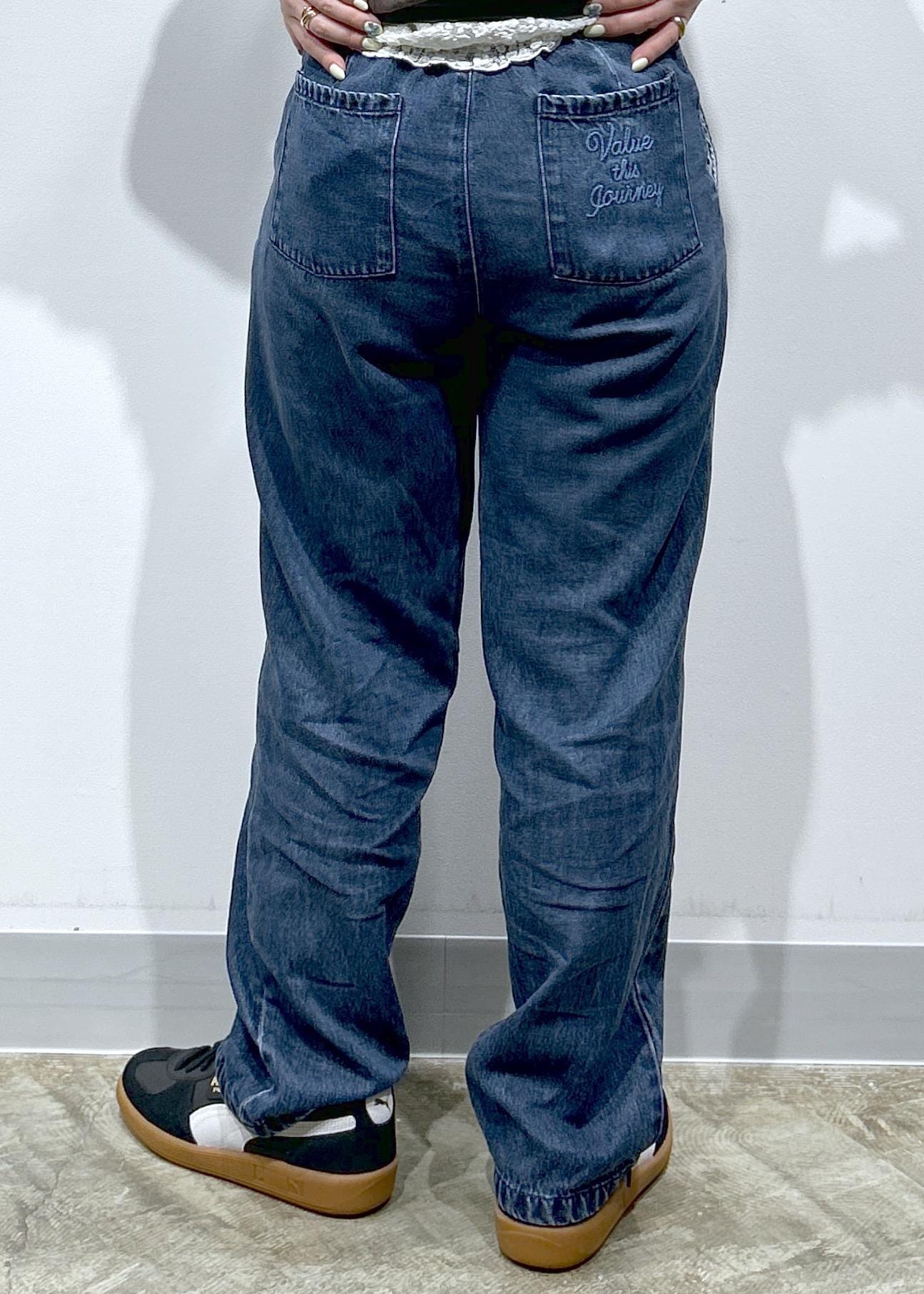 LE CERCLE par ropé刺繍入りデニムパンツ/セットアップ対応ネイビー系 / F¥6,853レビュー161cmで3cmヒールを履いて床につかない程の丈感です!少し底の高いものならスニーカーでも履けました!