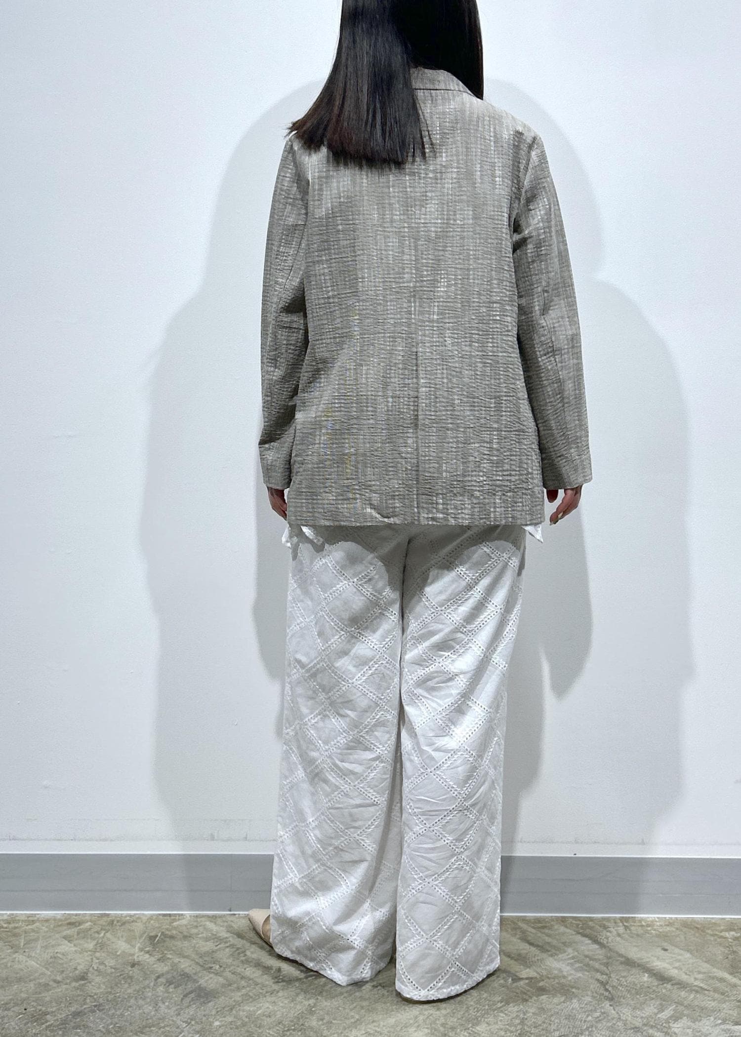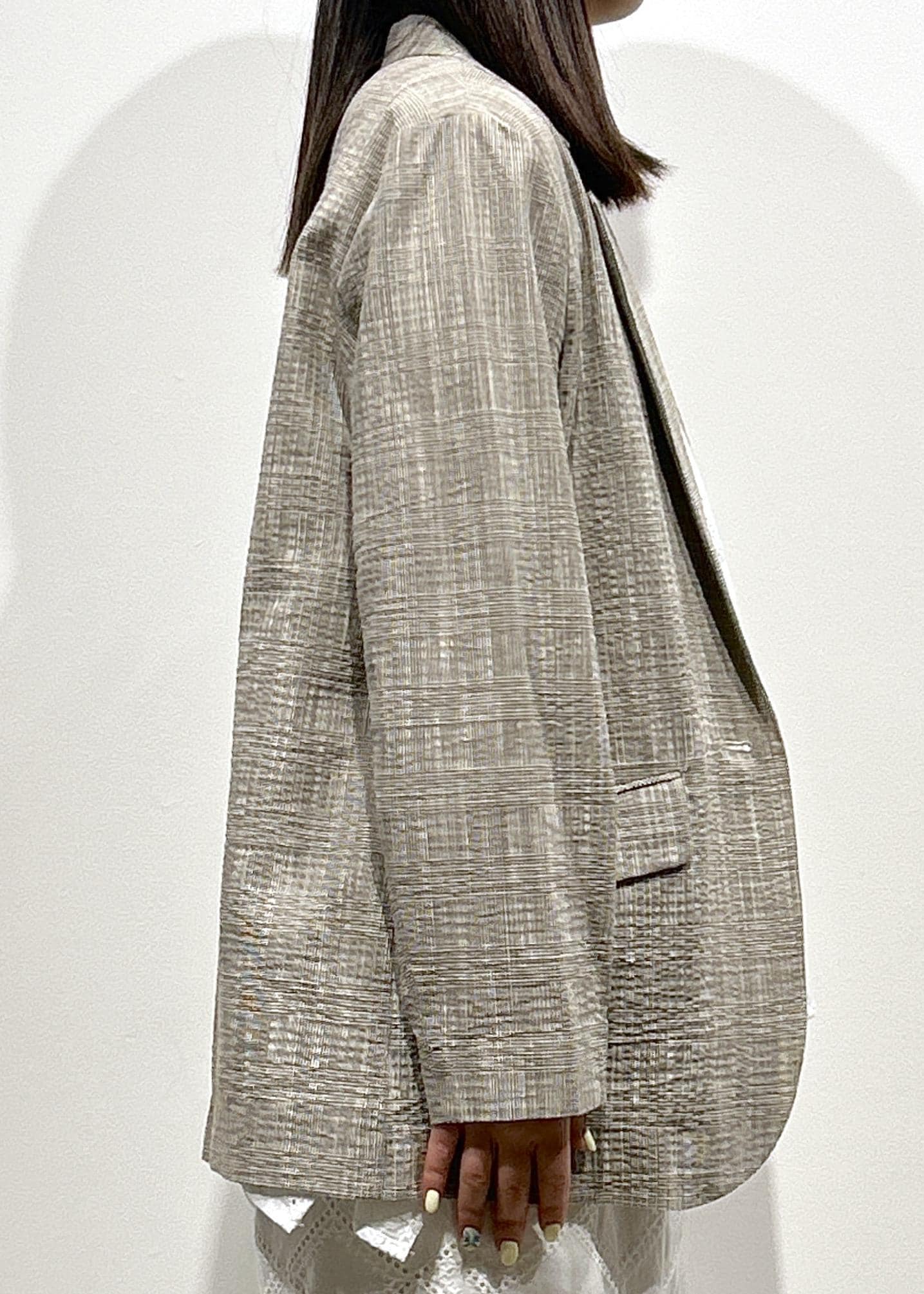 ポコポコとしたスラブジャケットを合わせた