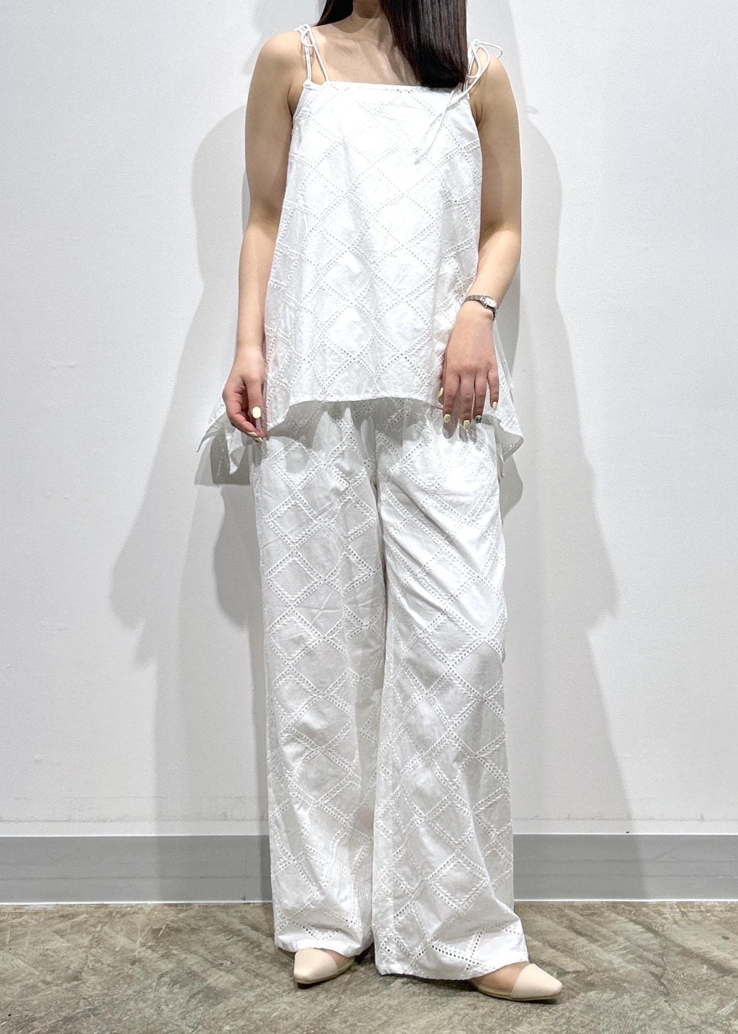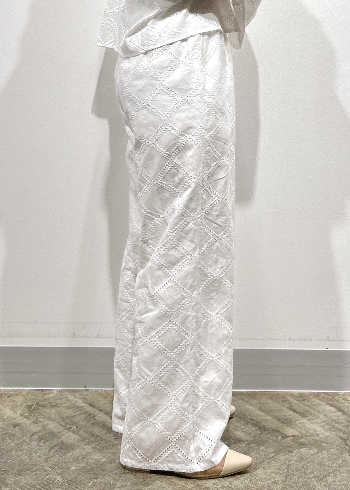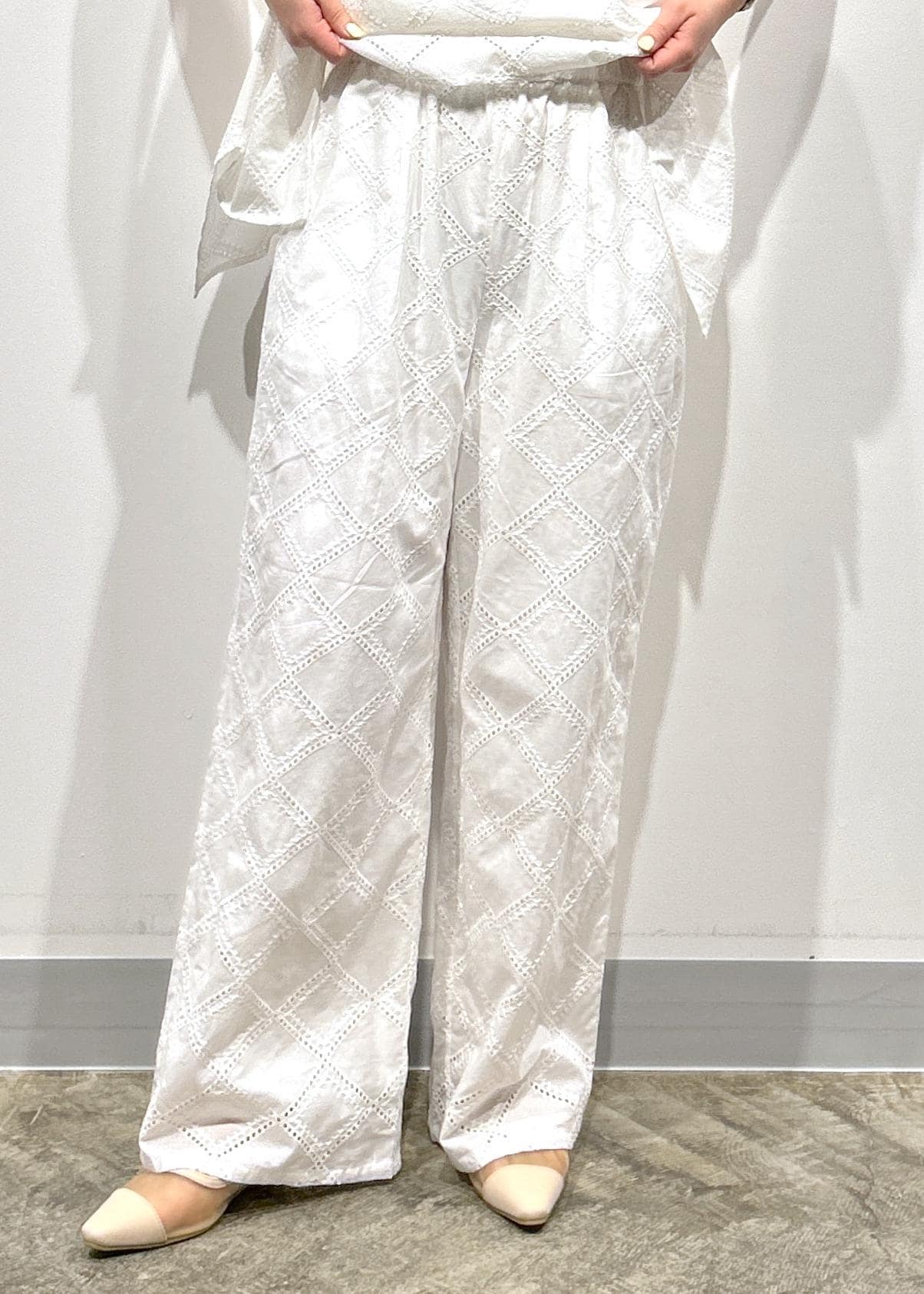 LE CERCLE par ropéスクエアレースイージーパンツ/セットアップ対応ホワイト / F¥8,690レビュー綿100%で柔らかく、リラックス感がある楽な着心地です!