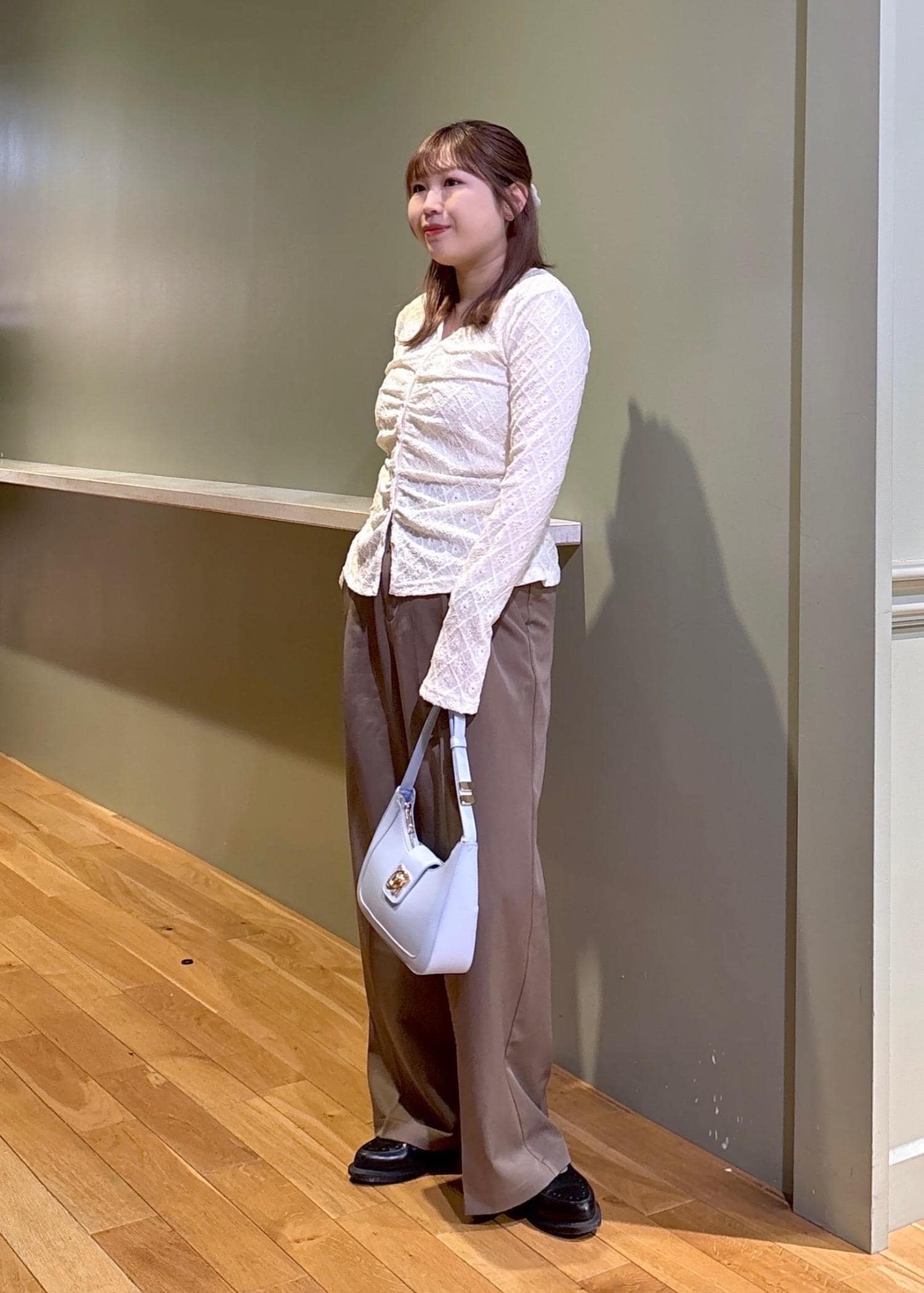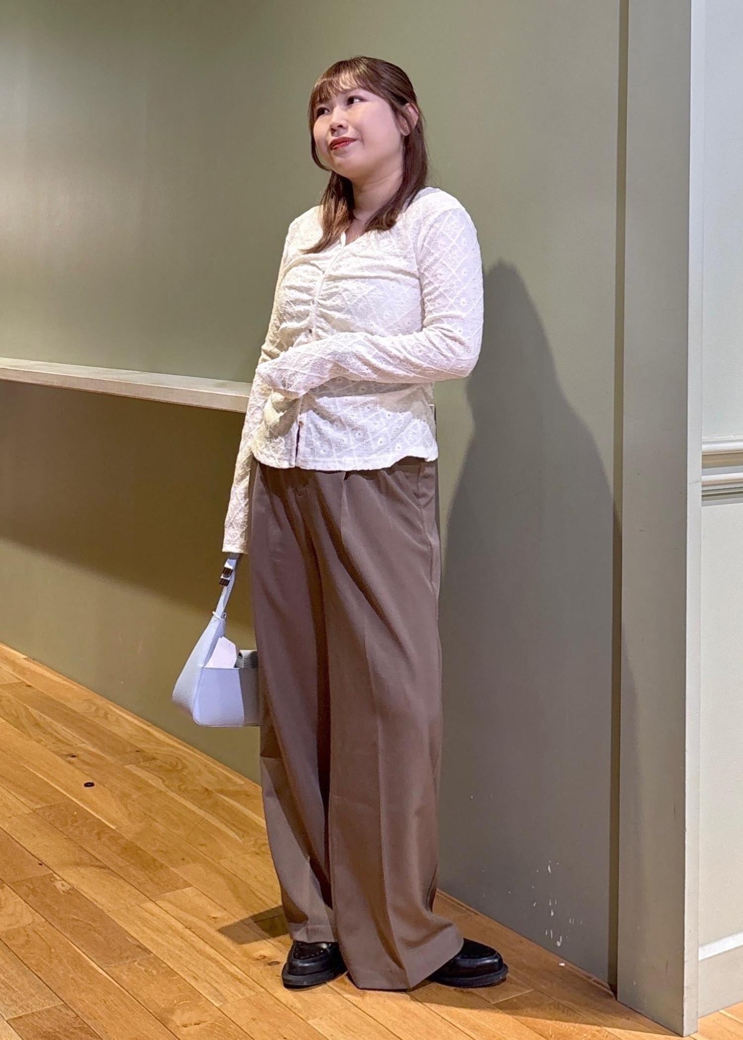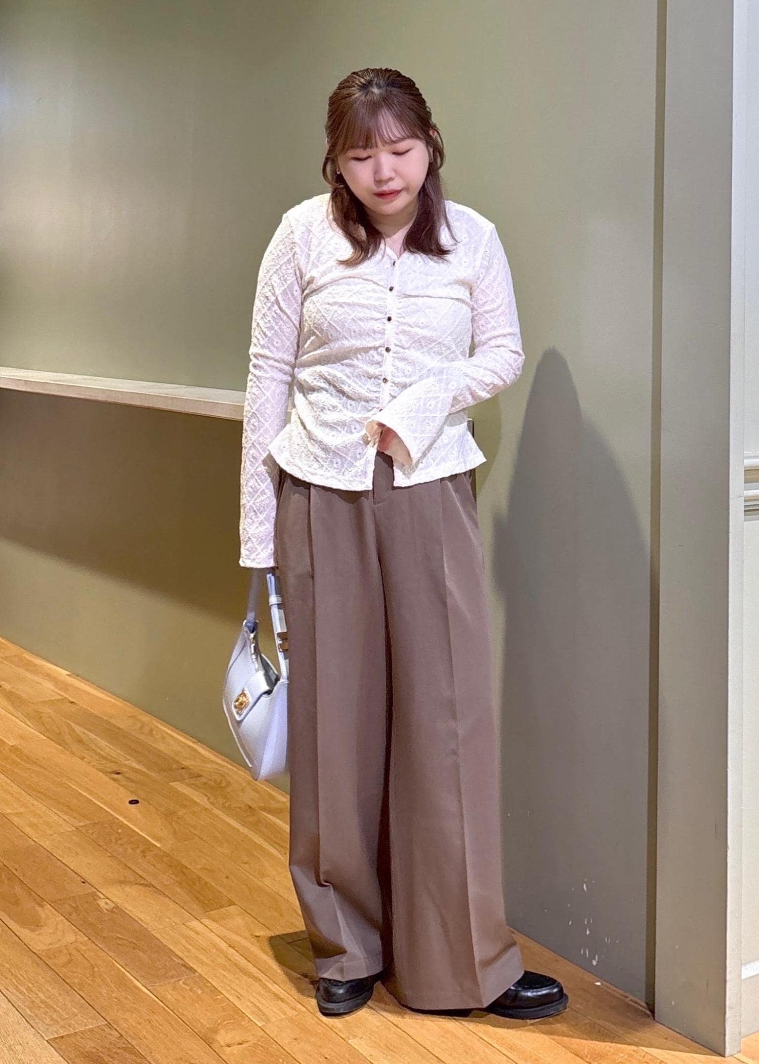 ワイドパンツと合わせてバランスよく大人スタイルに〇