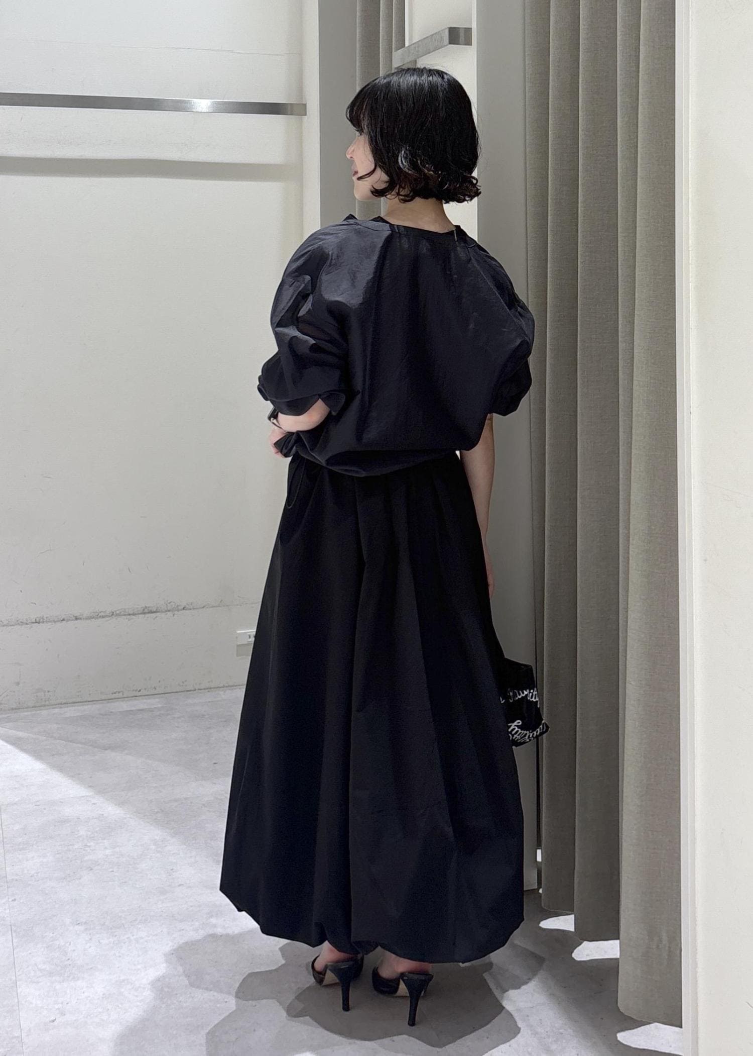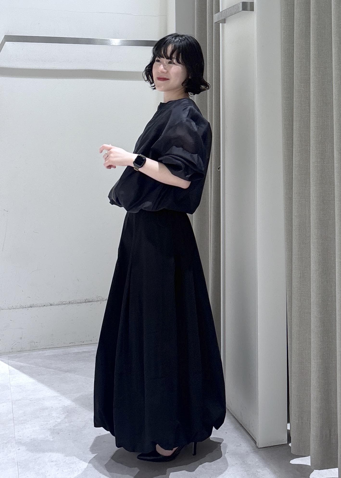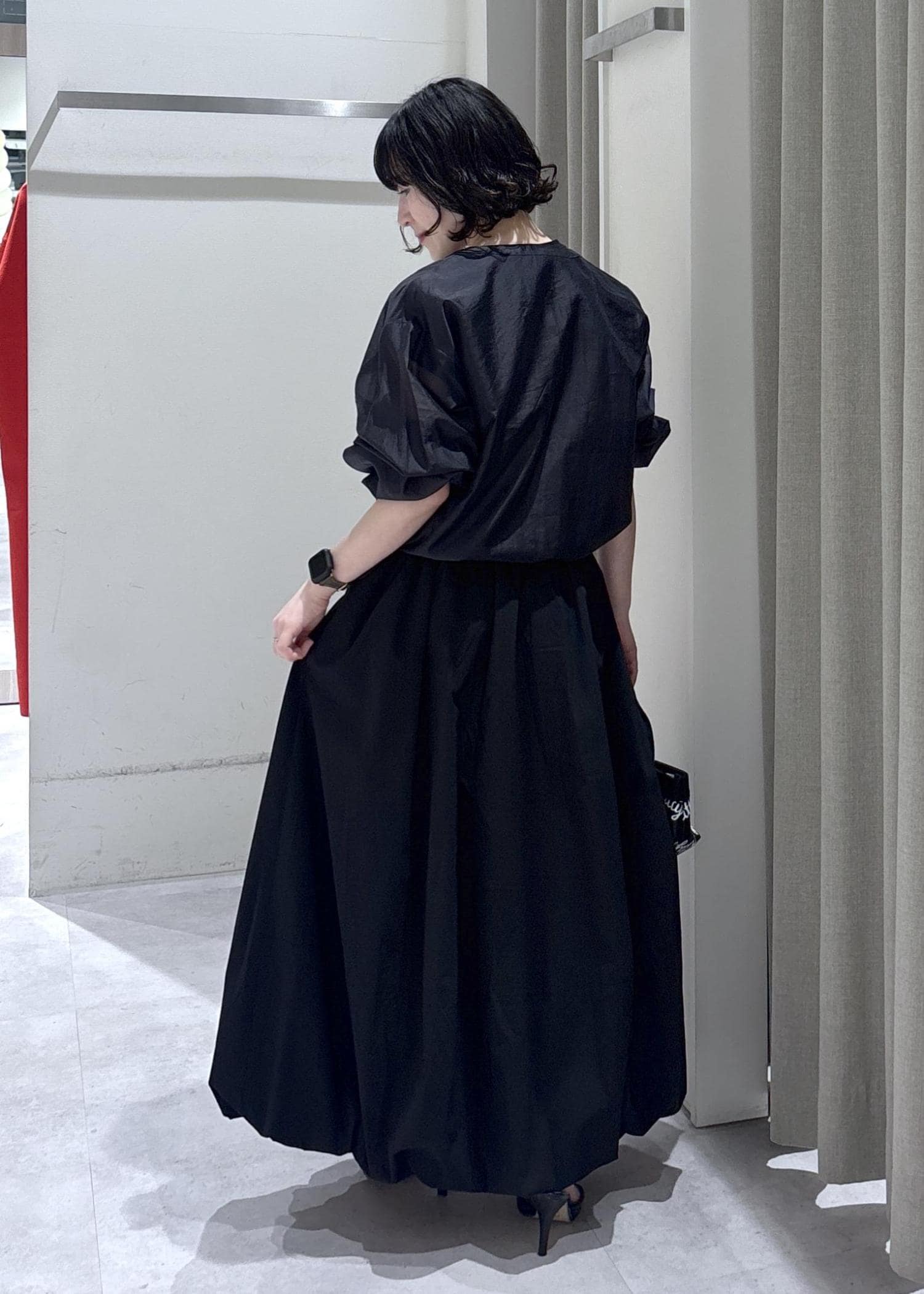 LE CERCLE par ropéプリーツバルーンスカートブラック / F¥9,350レビューウエストがしっかりとまれば低身長の方はロングスカートして着用可能!