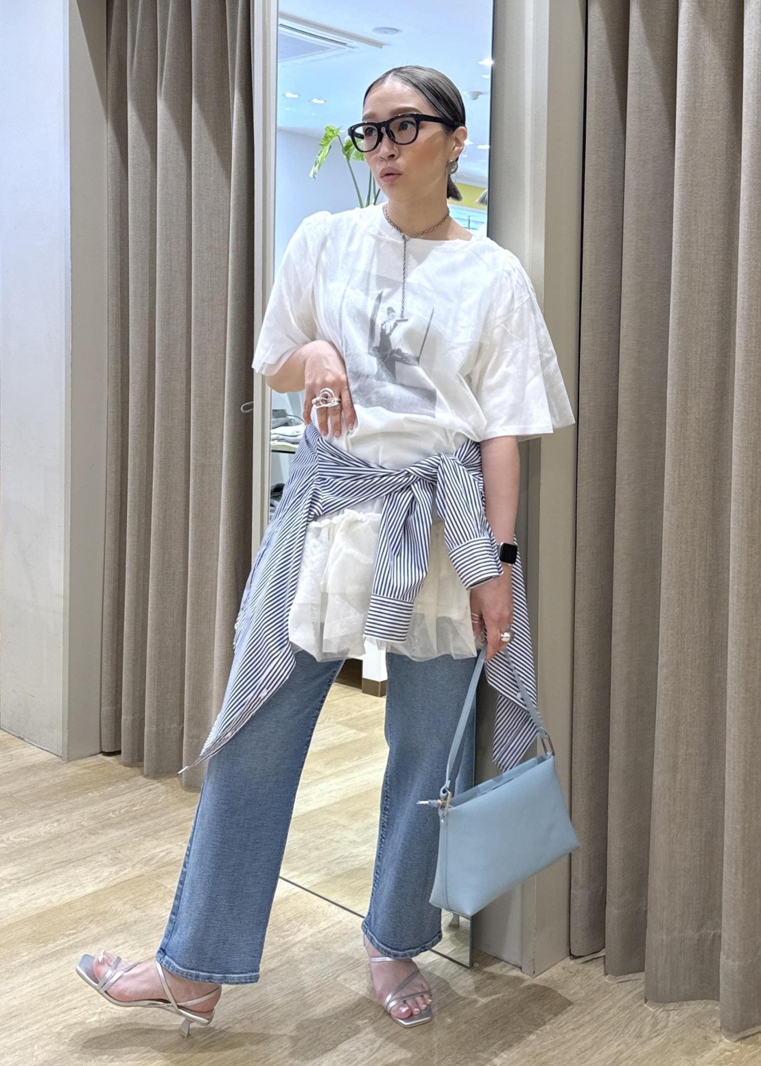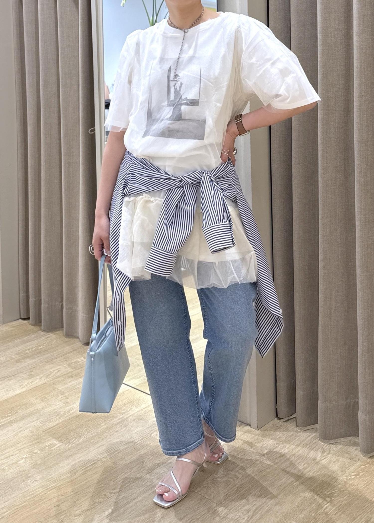 透けて見えるオードリーヘップバーンのTシャツも