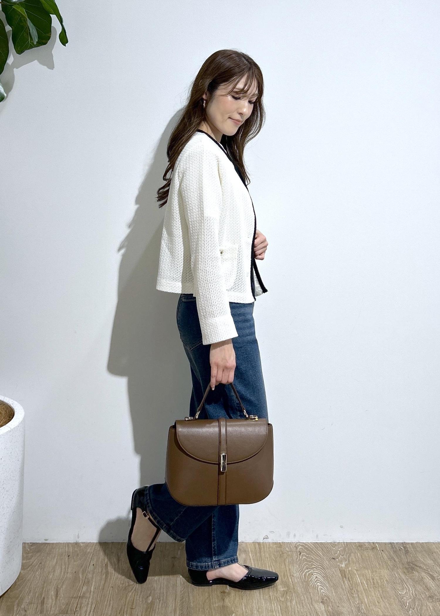 バックやパンプスも綺麗めなものを合わせてまとまりのあるスタイリングに。