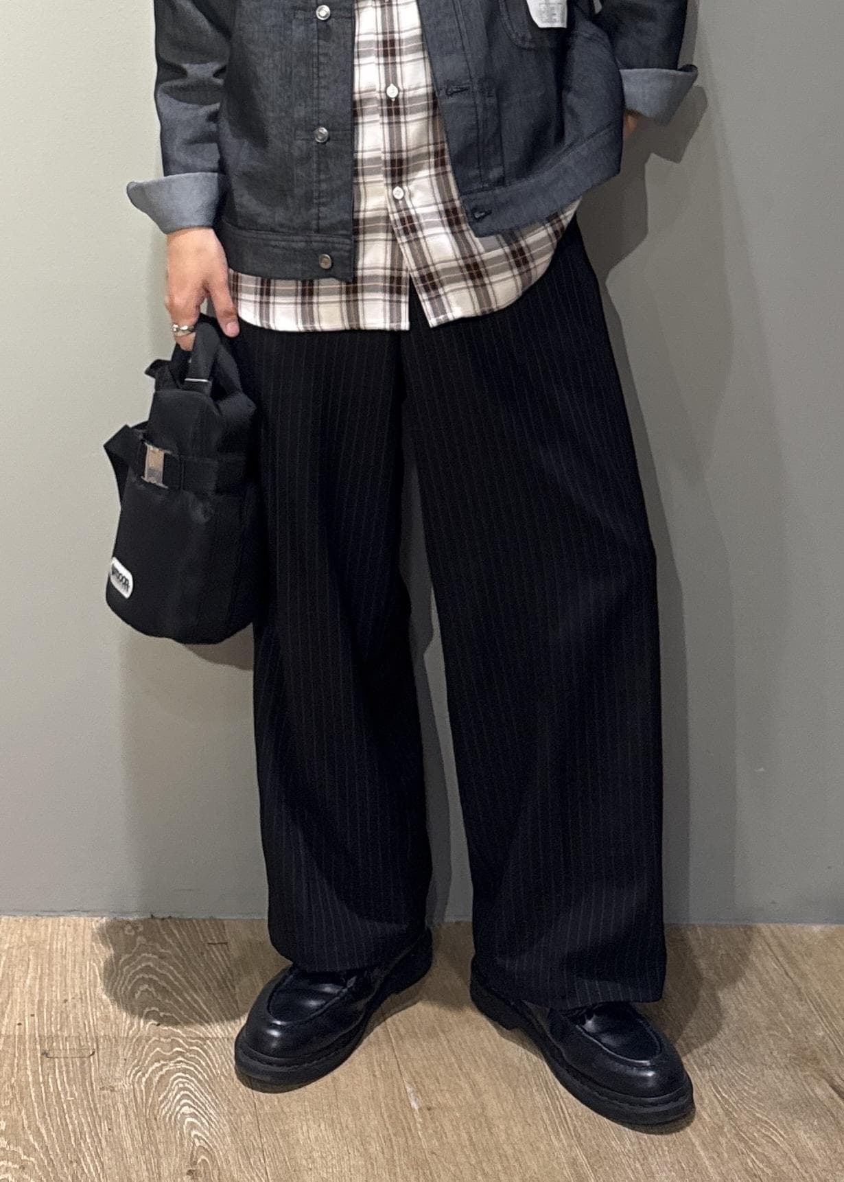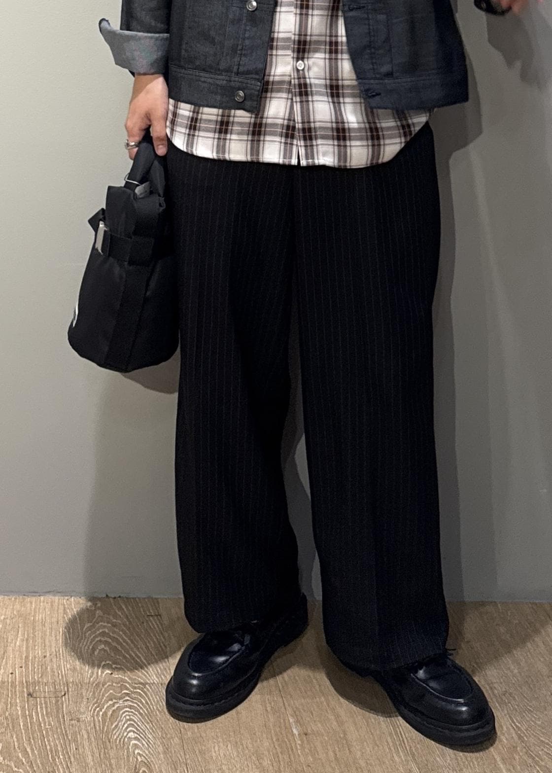 ヒップからワタリにかけてゆとりを持たせ、裾までストレートに落ちるモード感のあるシルエット。
