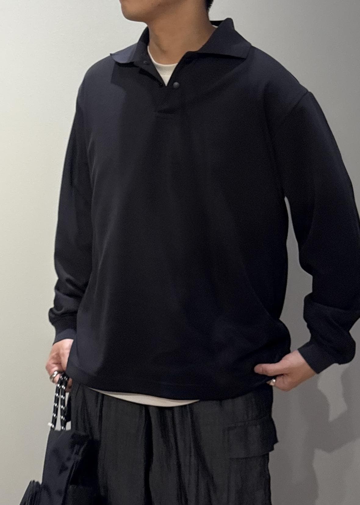 LE CERCLE par ropéエアリー鹿の子ポロスリーブチャコール / M¥6,490レビューリブ衿仕様のシンプルな長袖ポロシャツ。