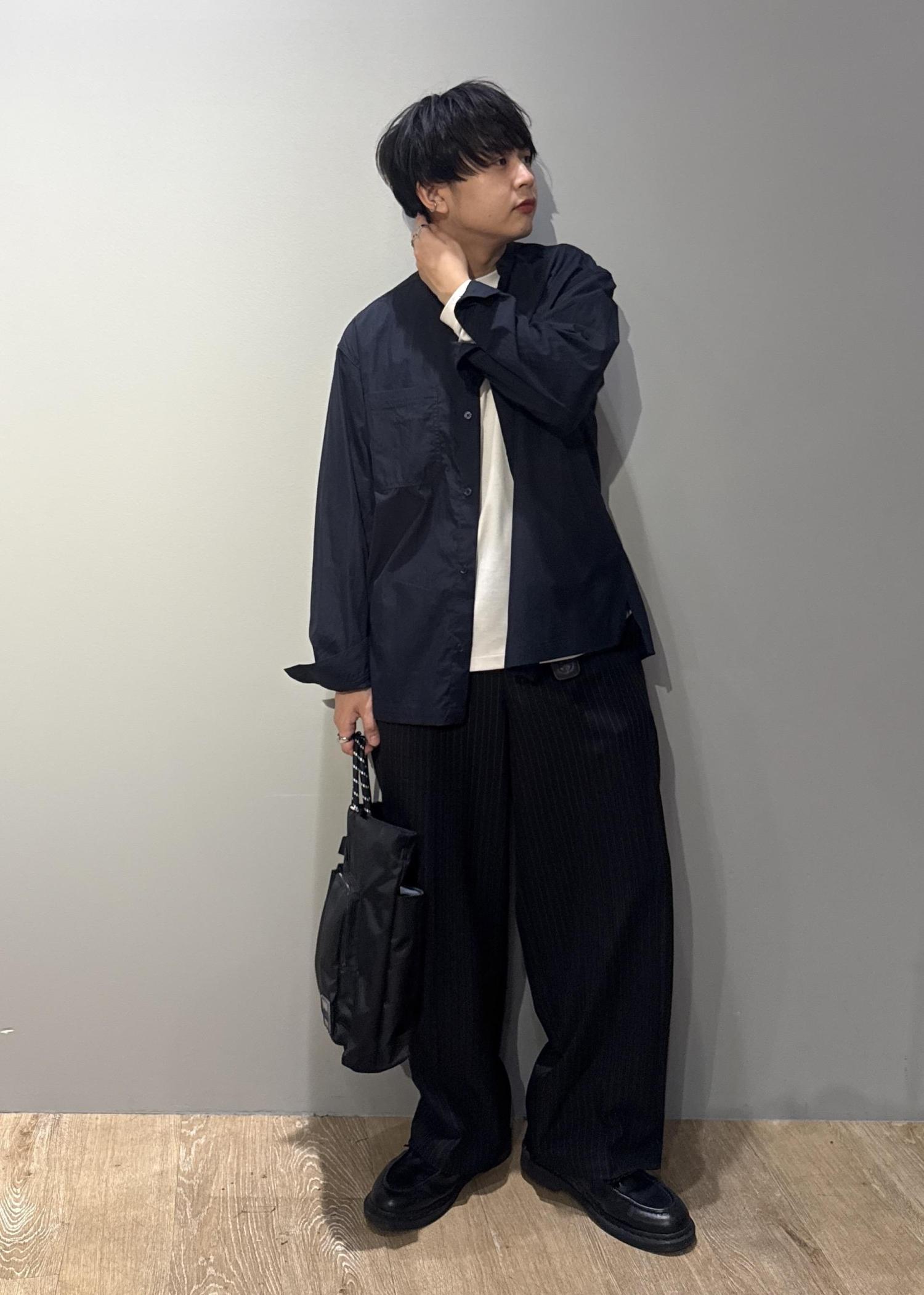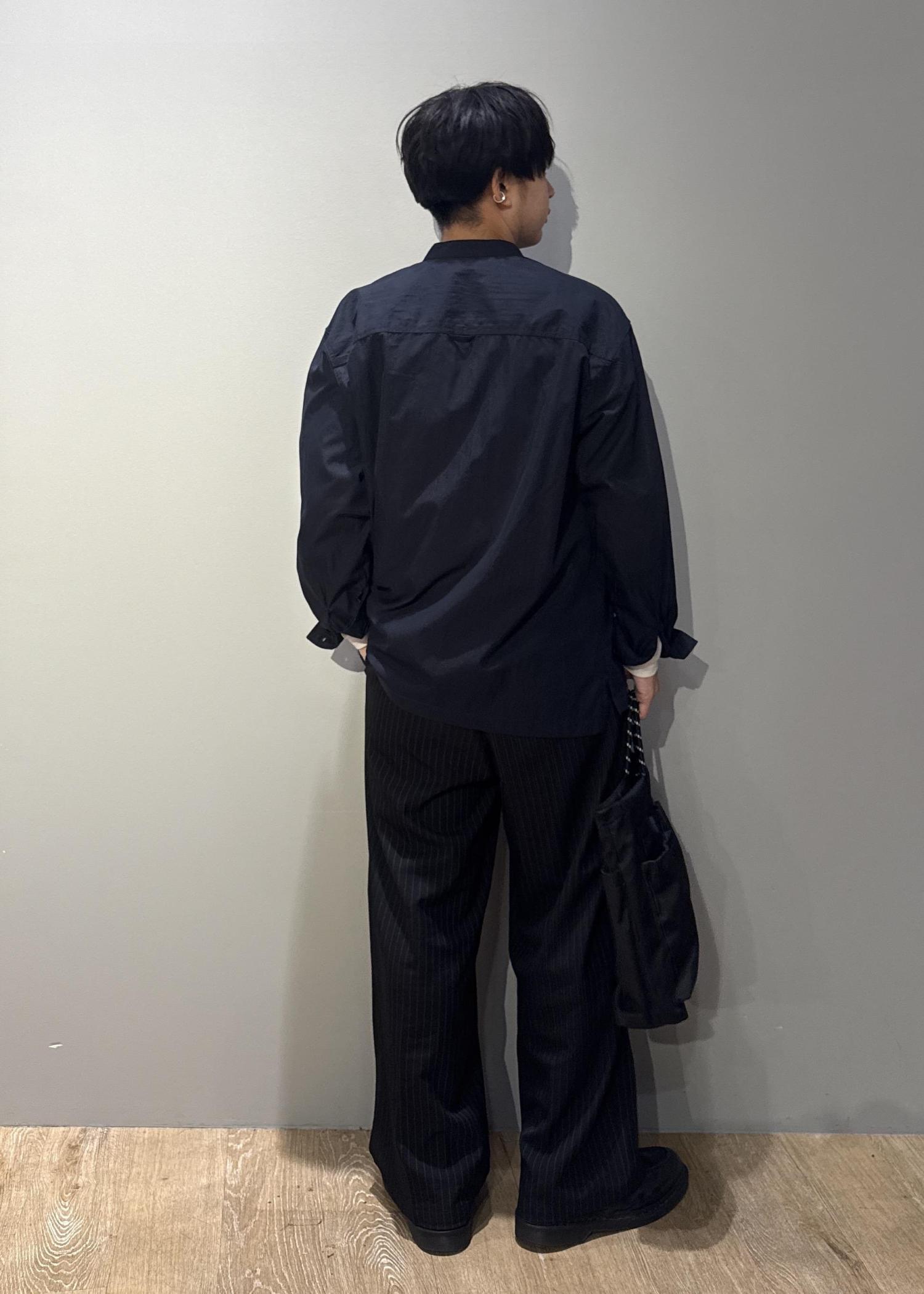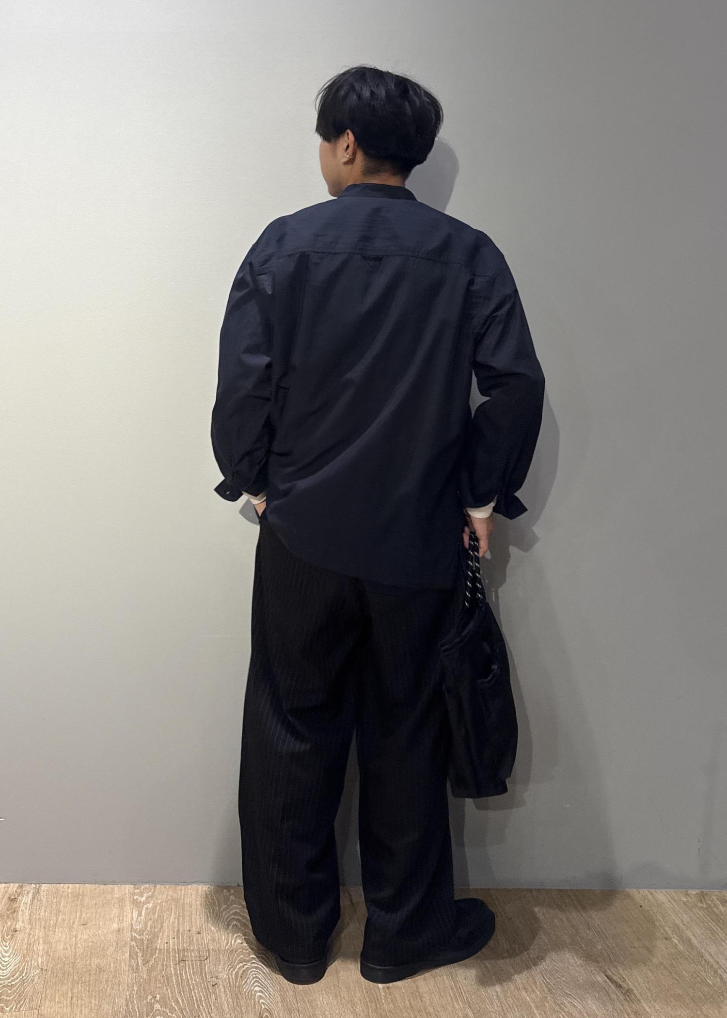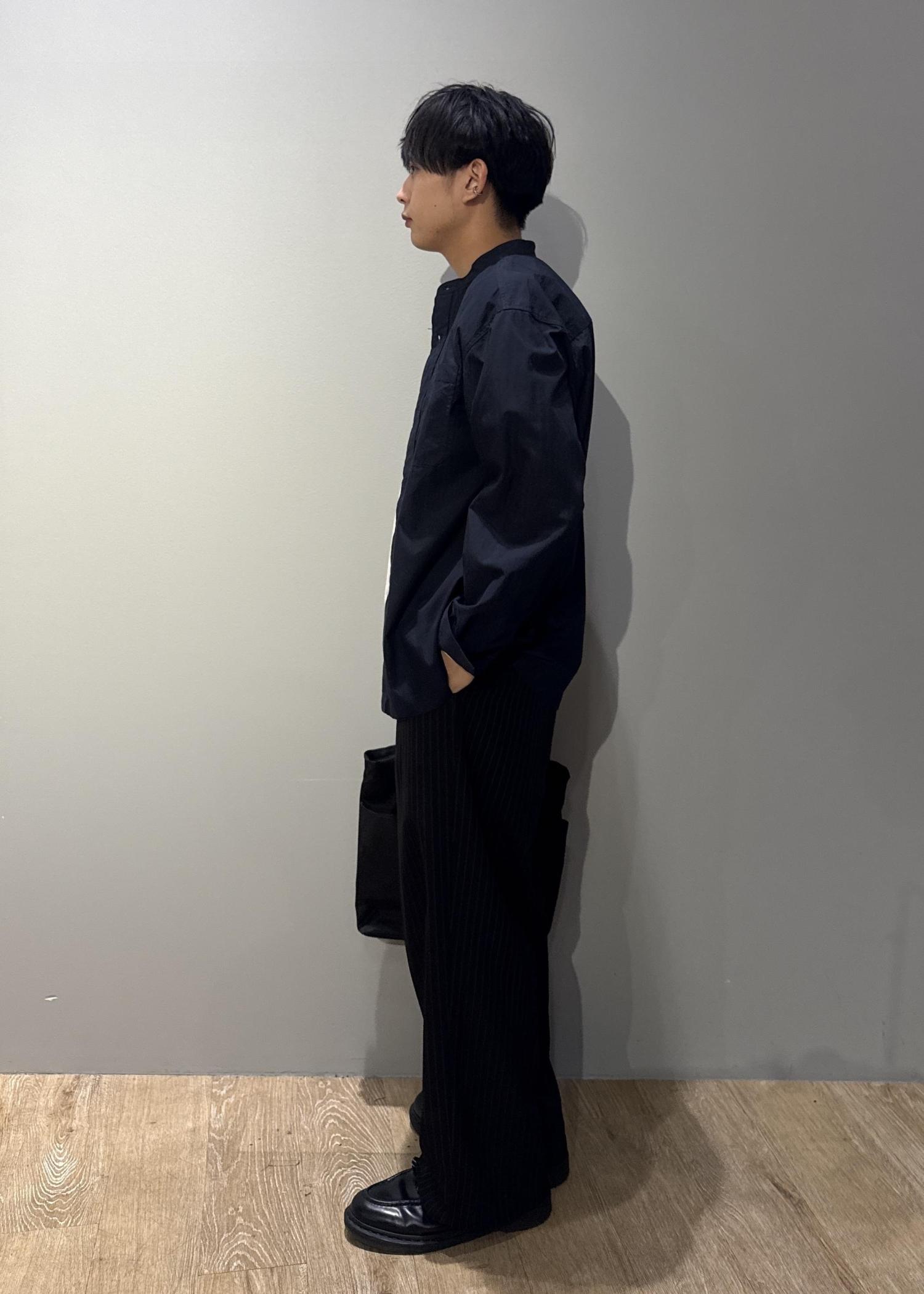 今回はバンドカラーシャツを使ったコーデです。