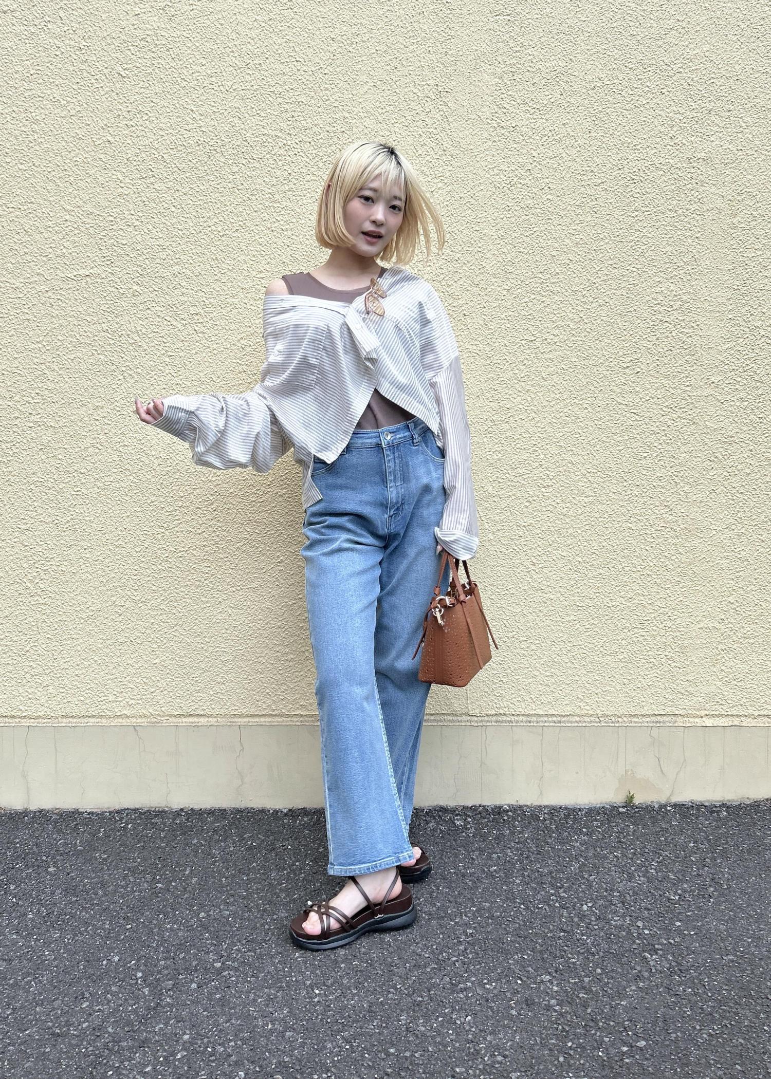 ブラウスの着こなし方を少し変え、夏に人気な肩出し風に!!