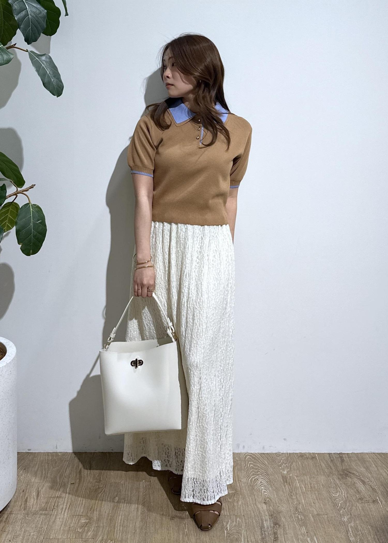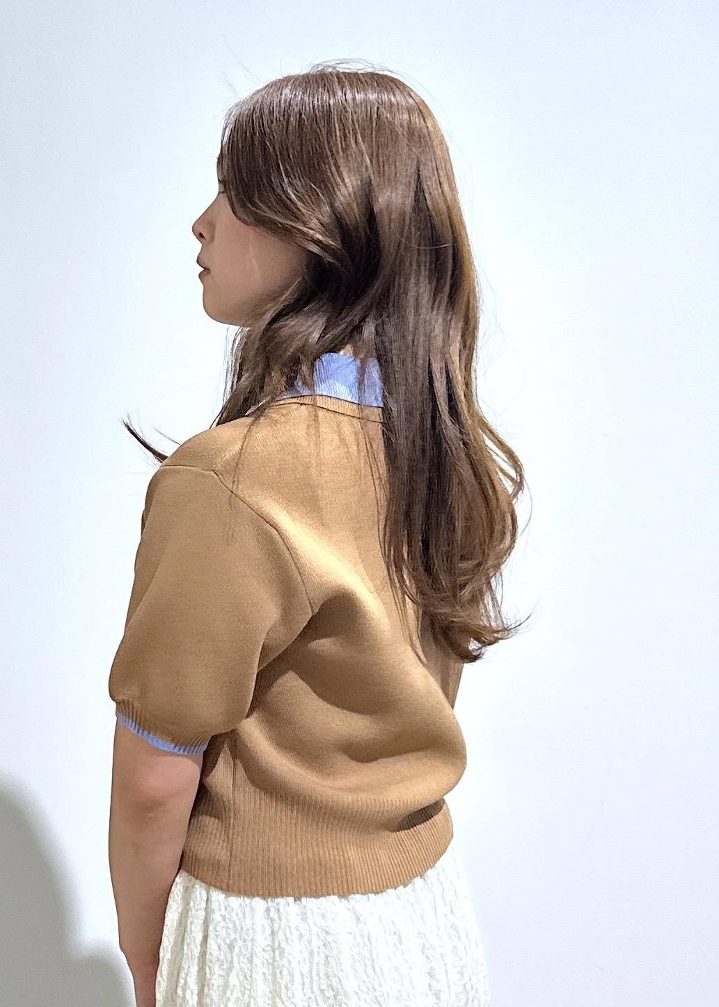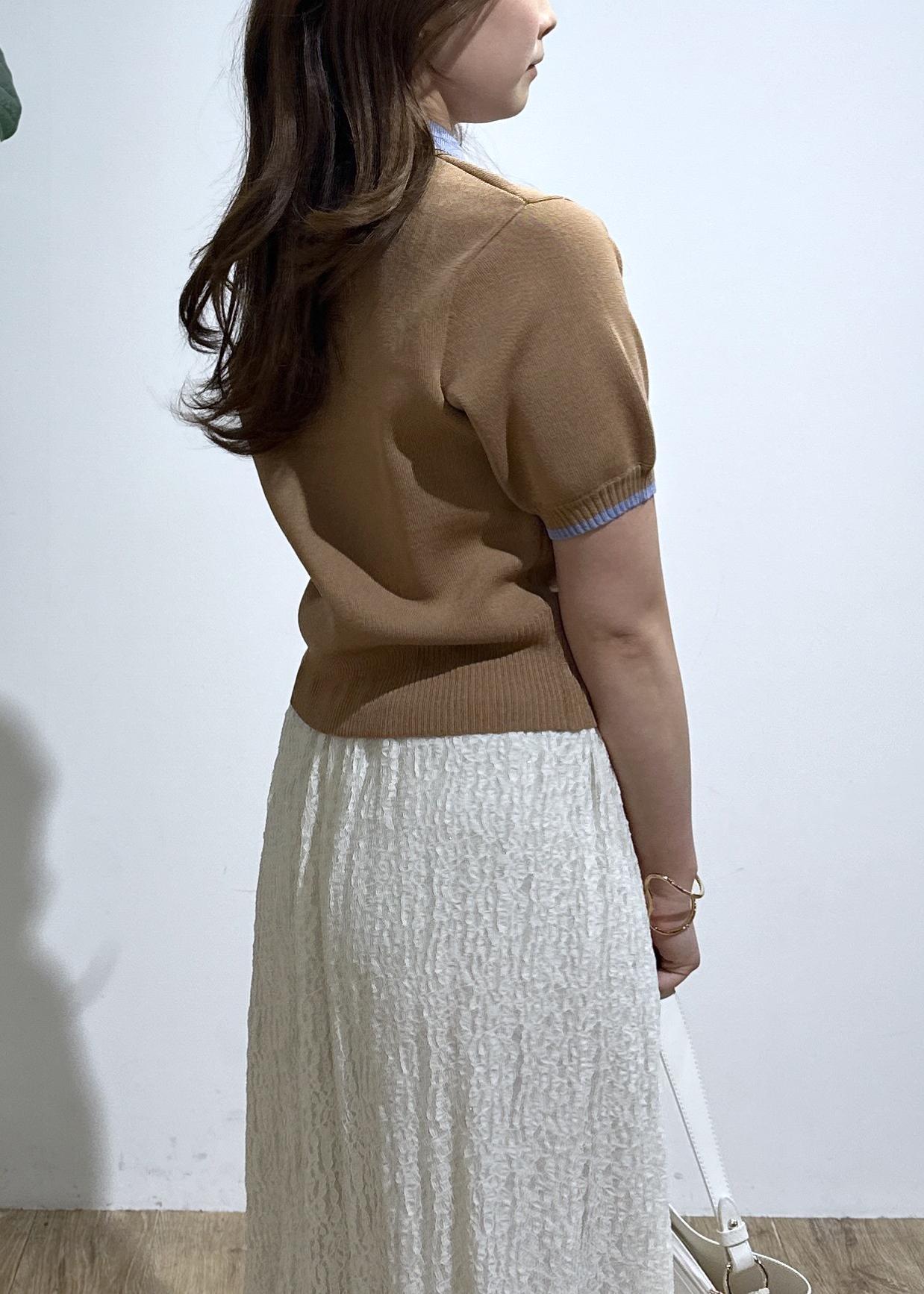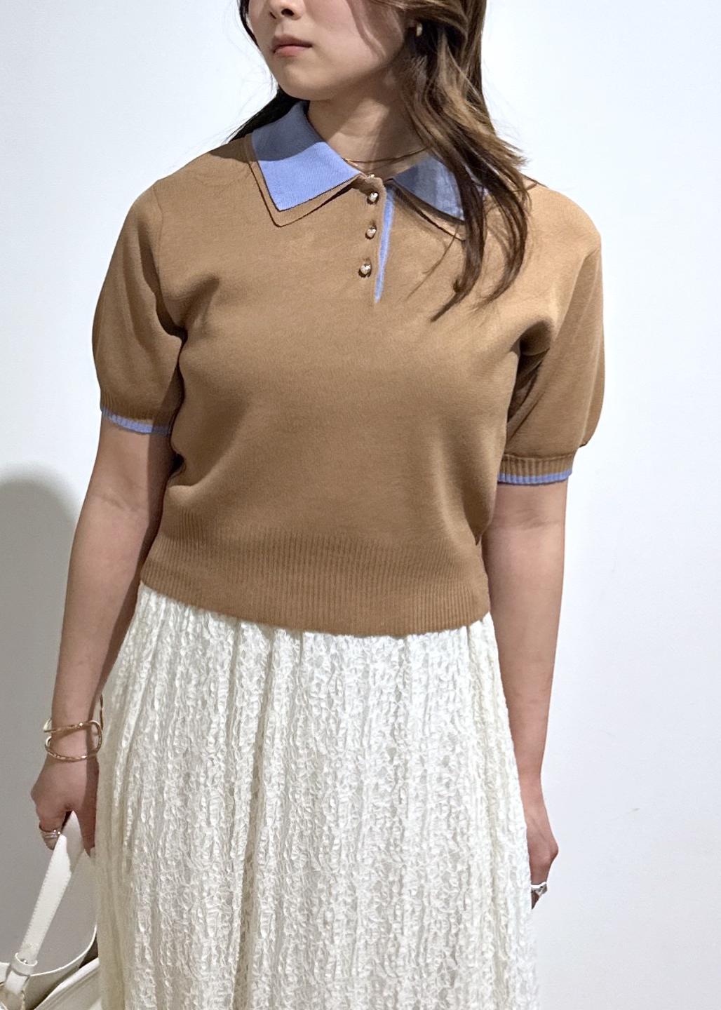 ダブルカラー半袖ポロニットトップス/イージーケア・WEB限定カラー