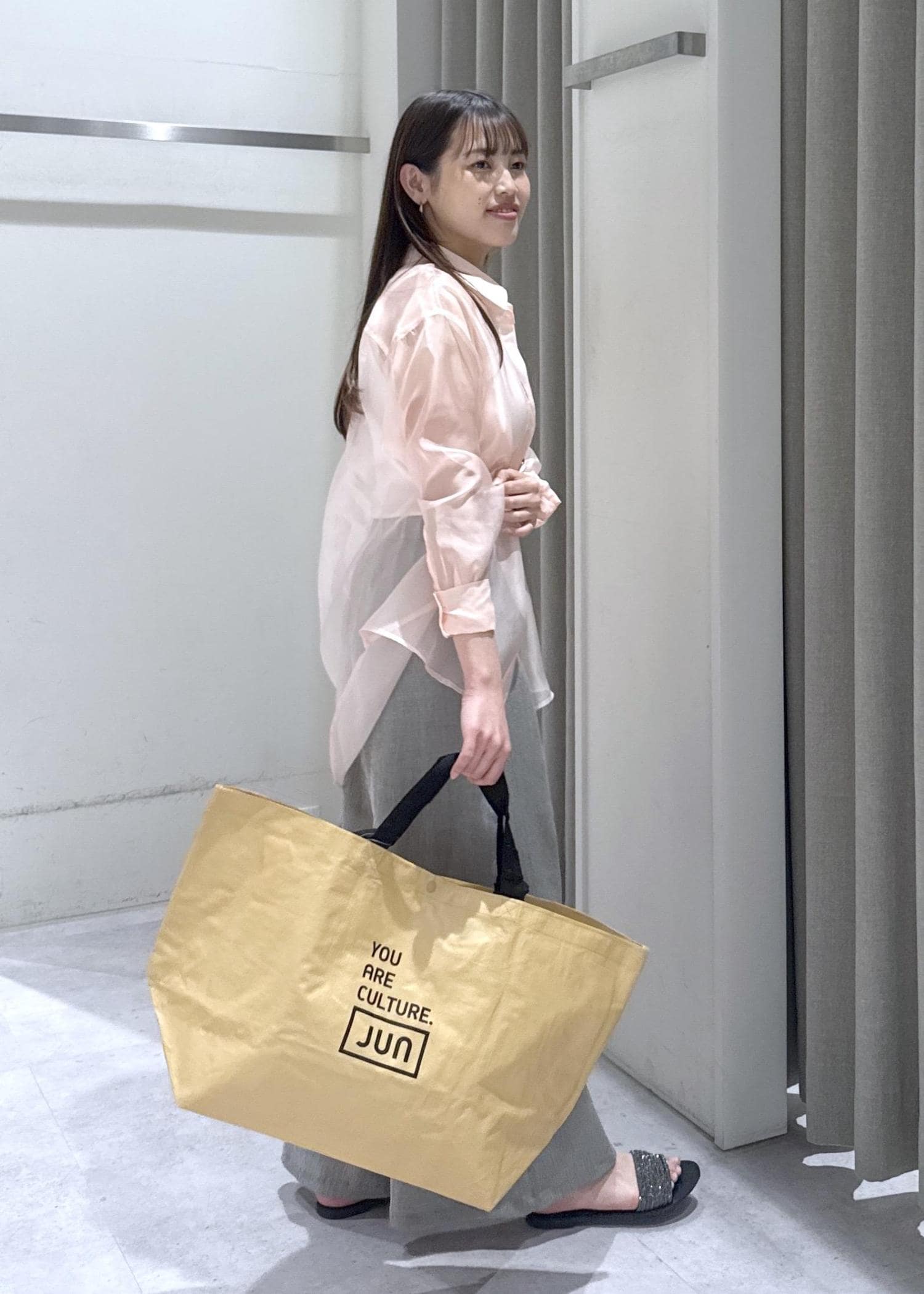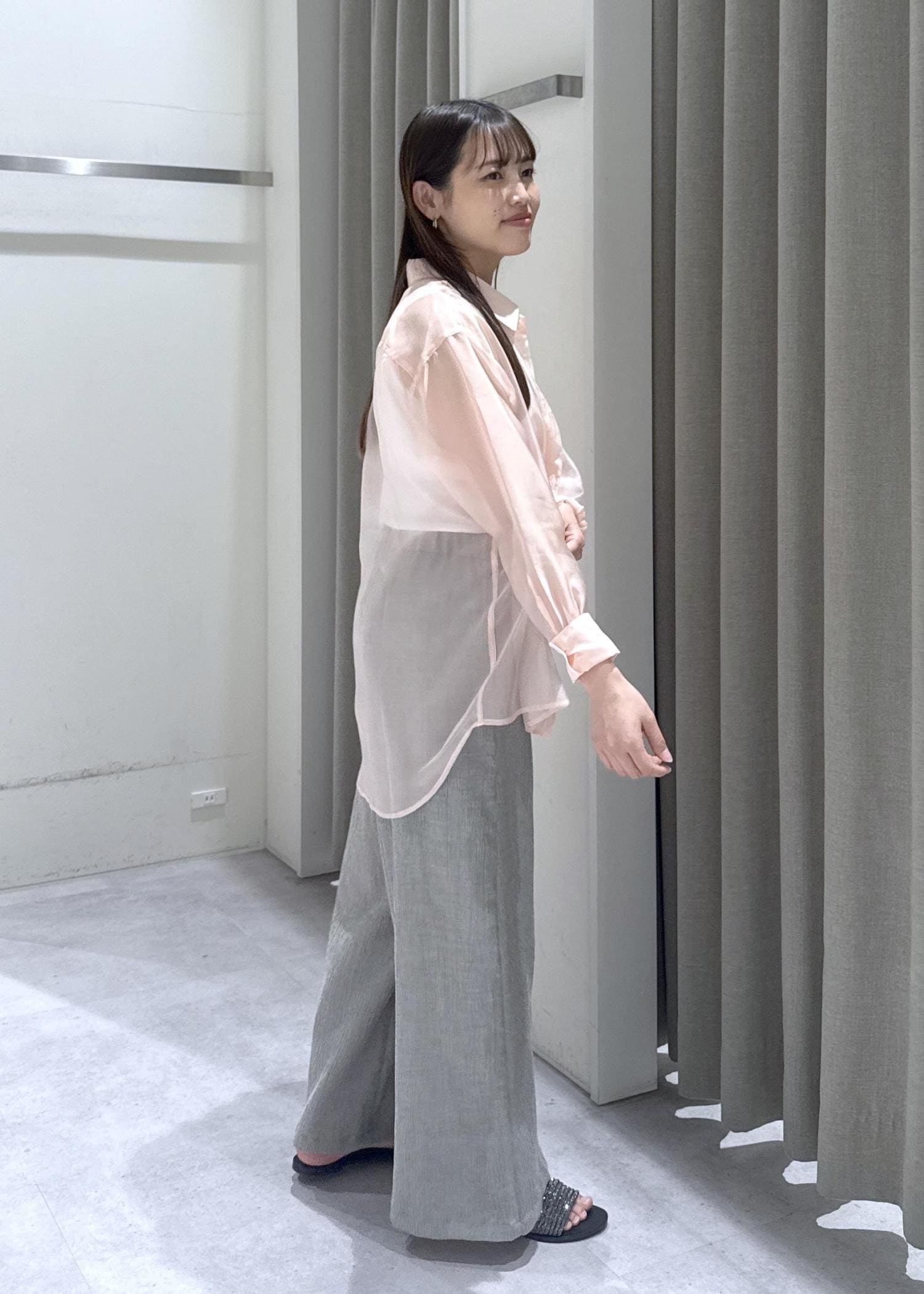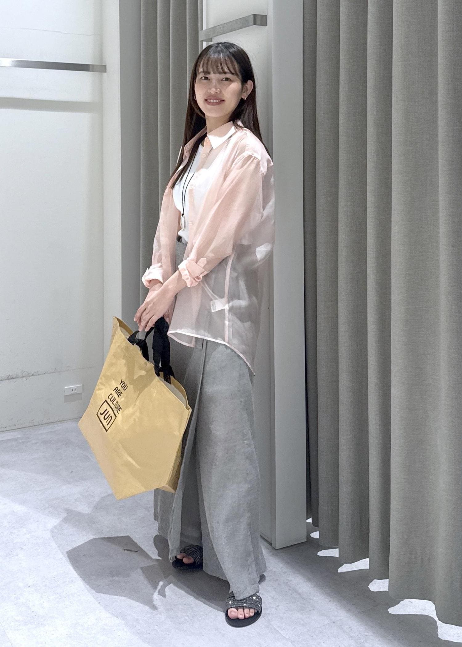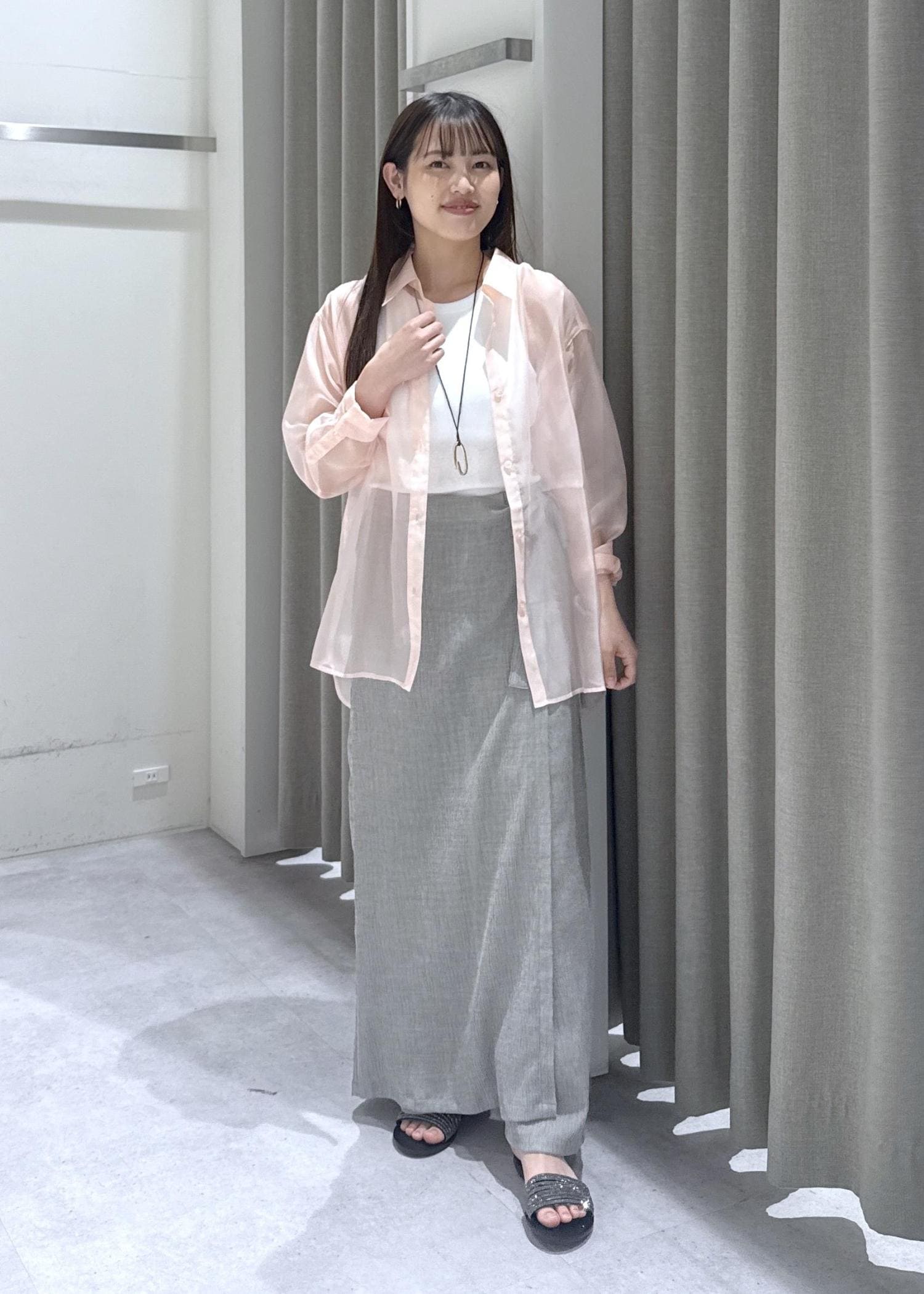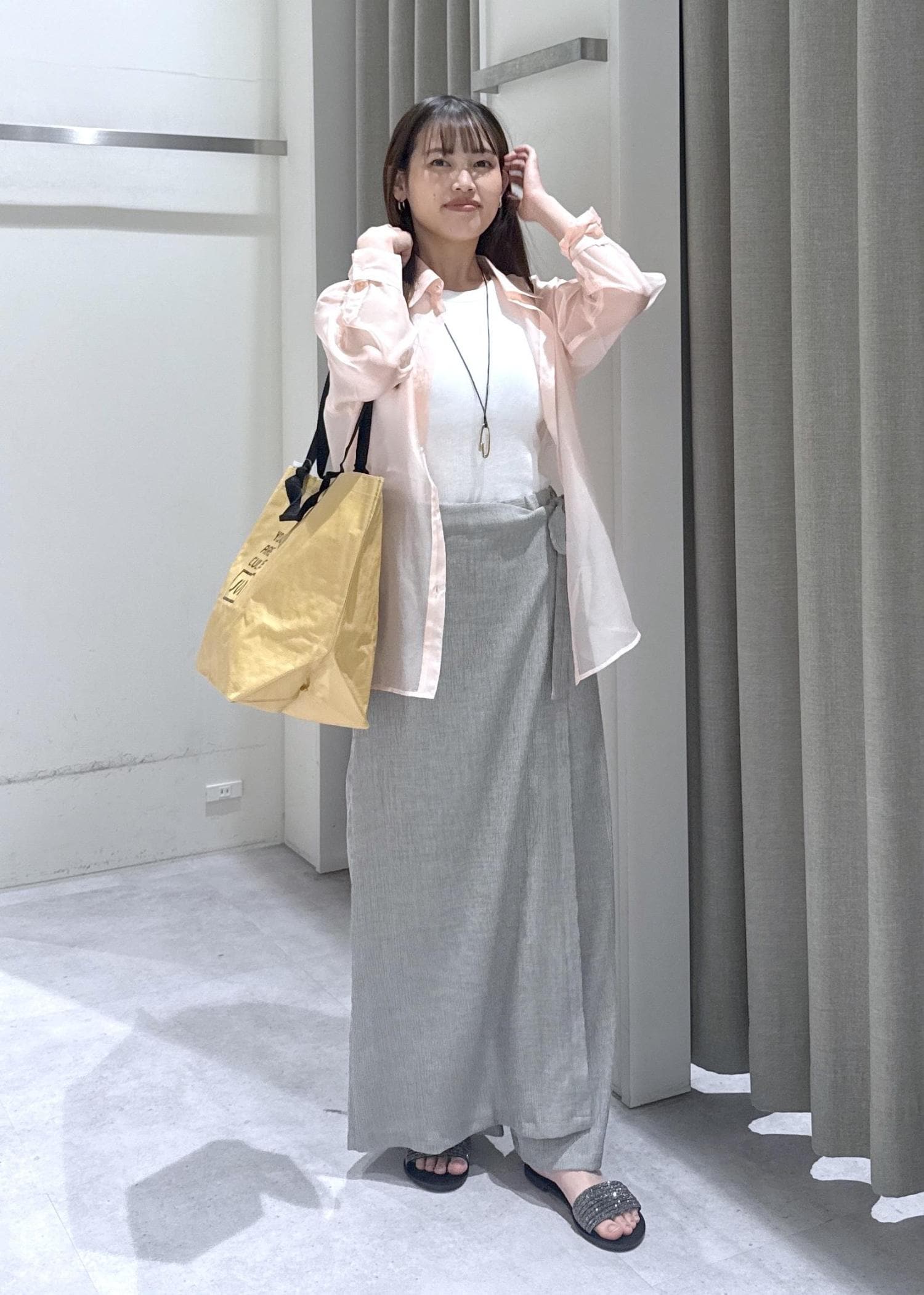 シアーシャツの夏のお出かけスタイリング