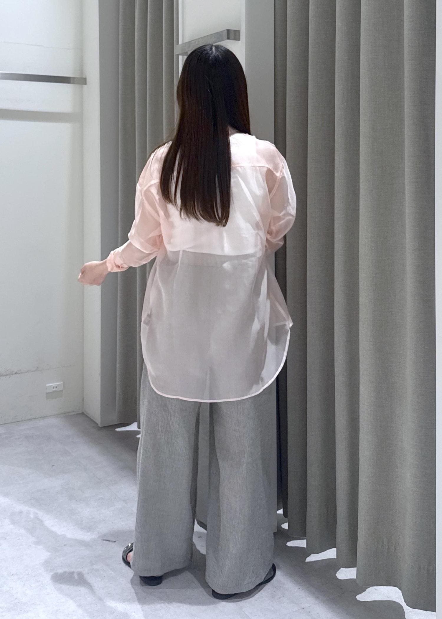 ピンクのシアーシャツを使った夏のキレイめカジュアルスタイリングです☺︎