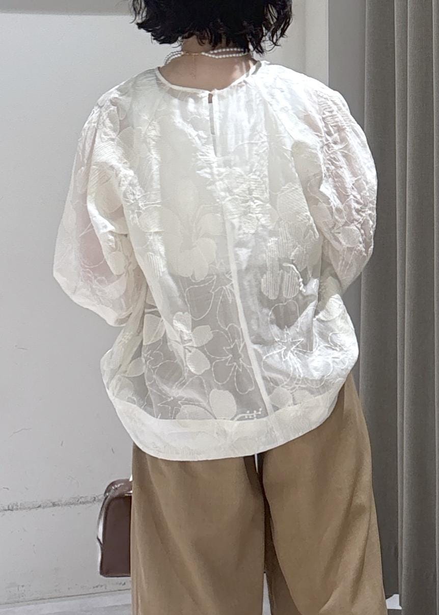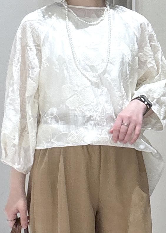 LE CERCLE par ropéフラワー刺繍プルオーバーオフホワイト / F¥7,590レビュー白は肌の見え方がふんわりとして肌加工されたかのように肌見え抜群✨
