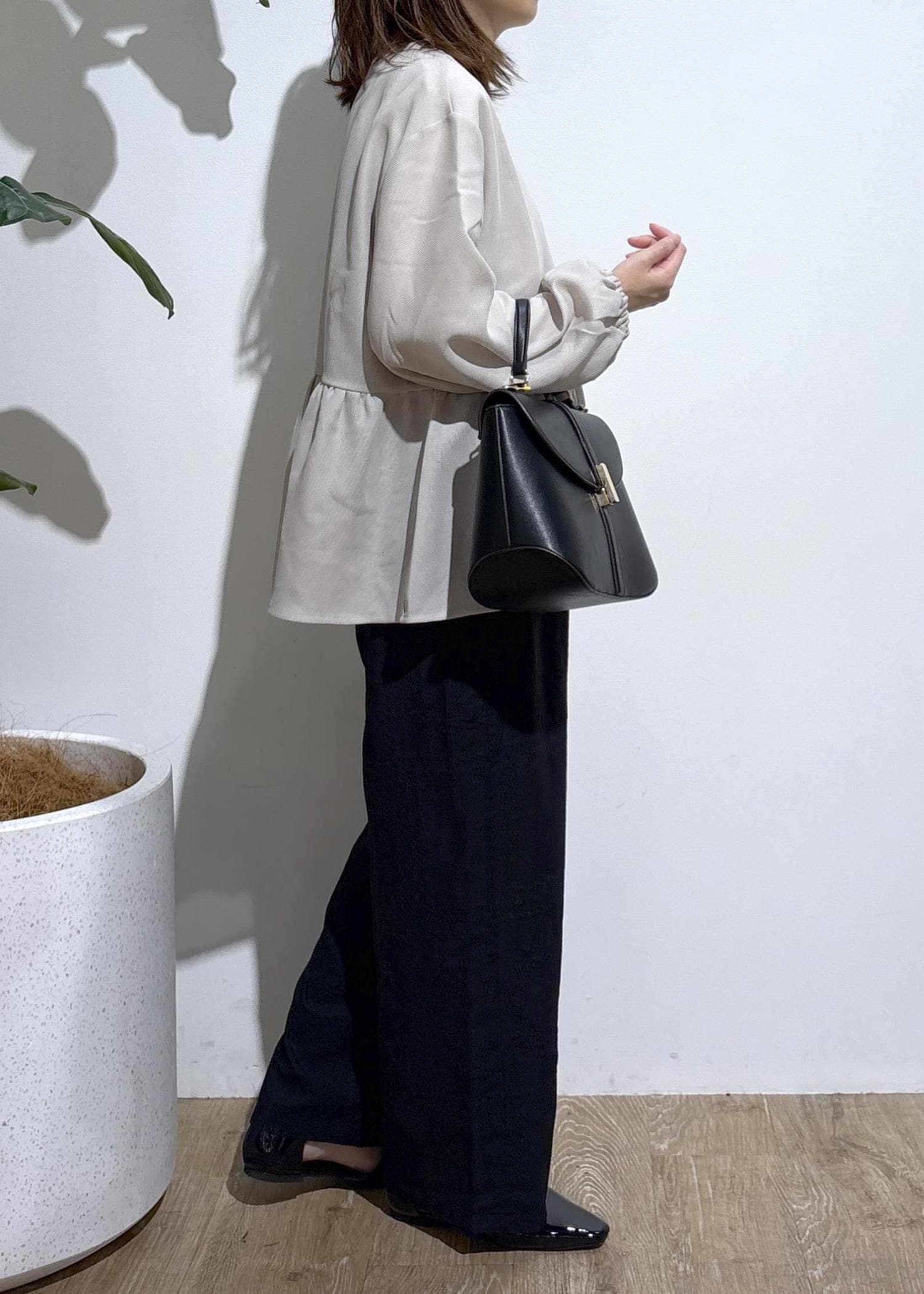 丸みがあるのでかっちりし過ぎず、普段使いのきれいめコーデにも活躍します。