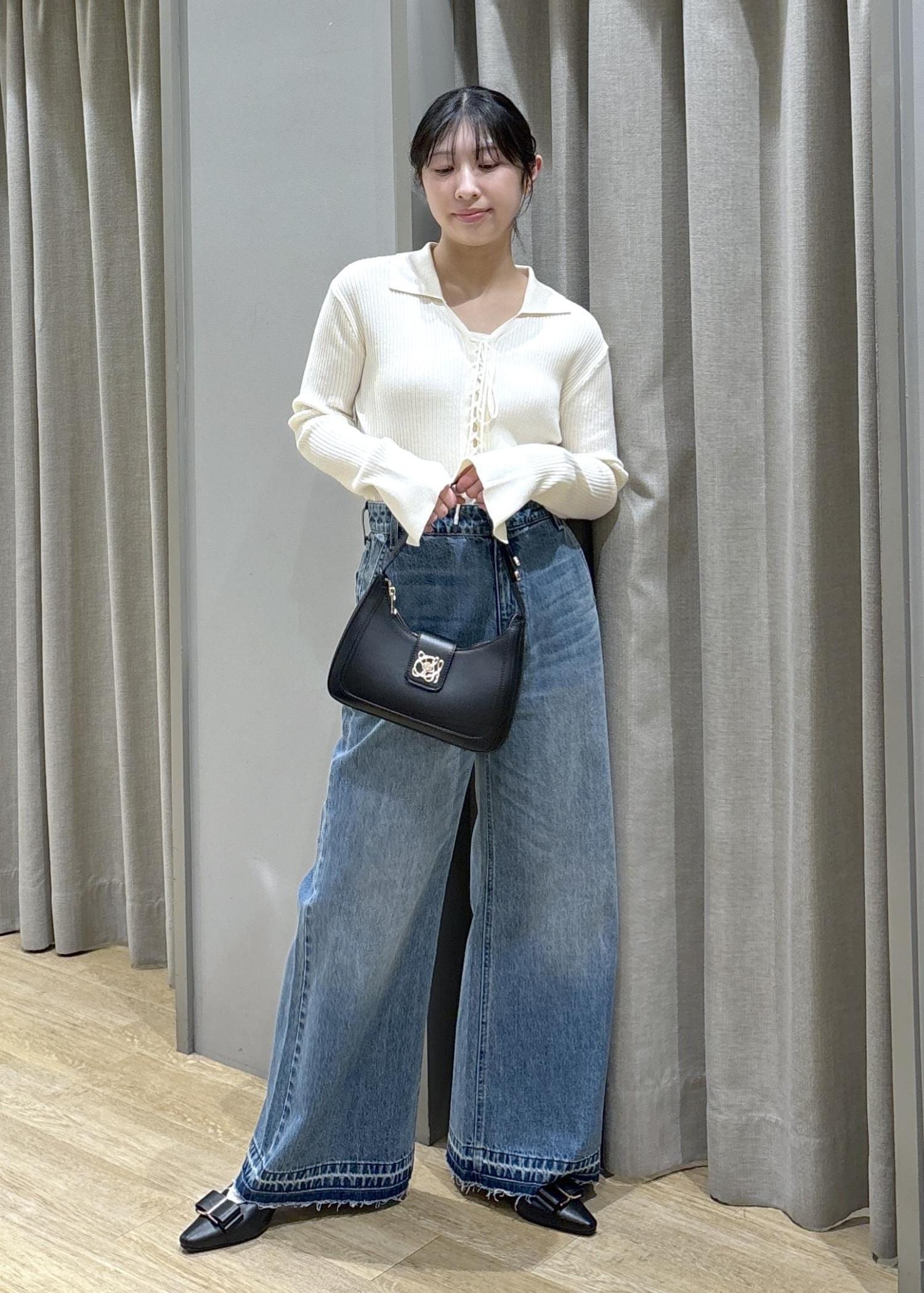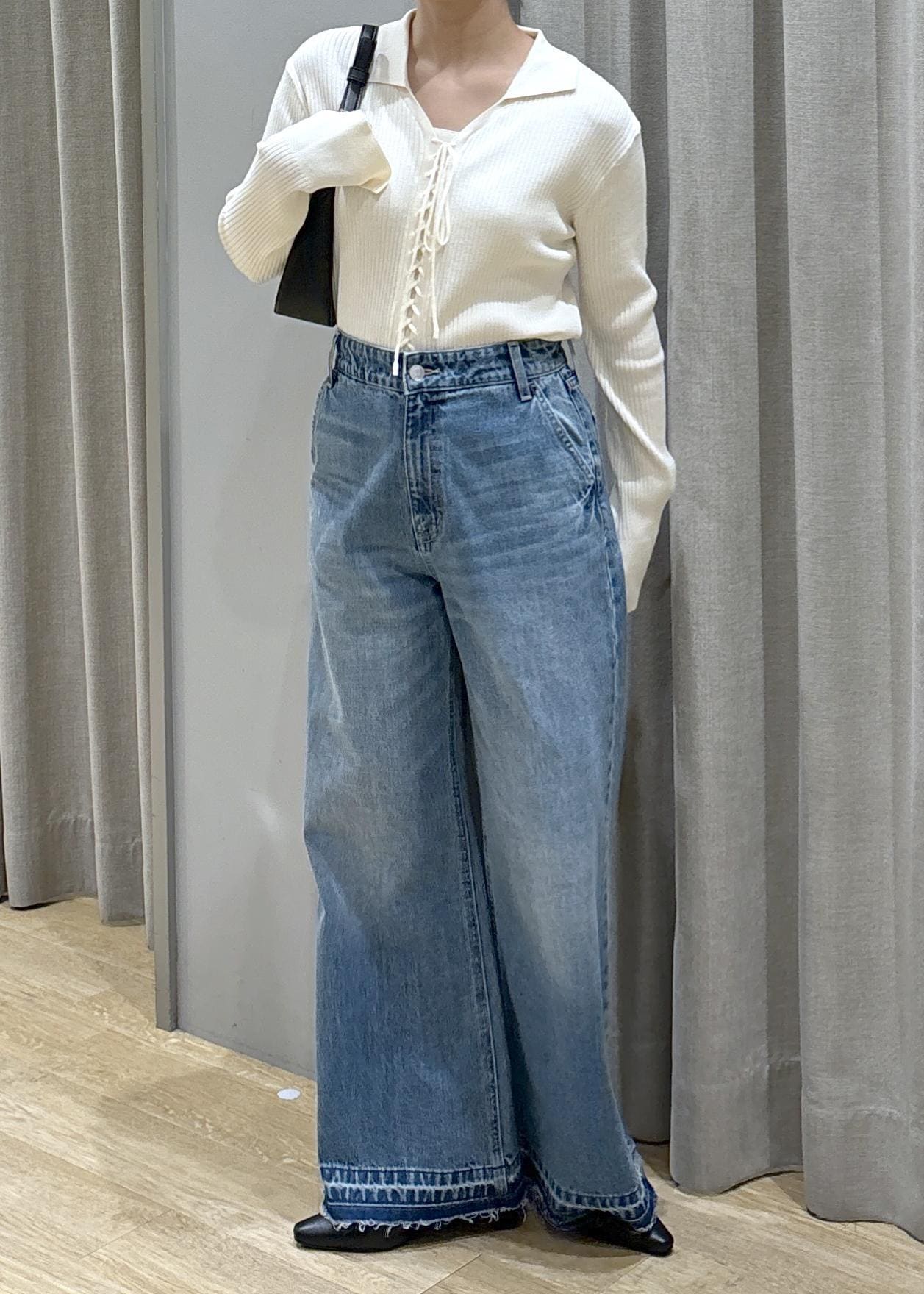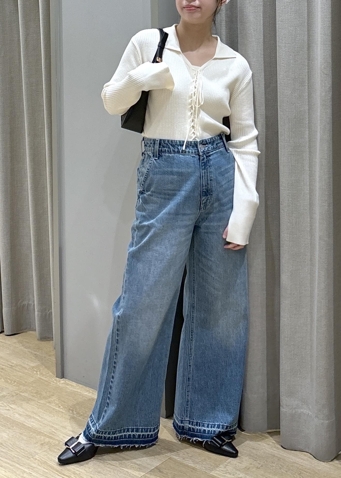 リブニット×バギーデニム
