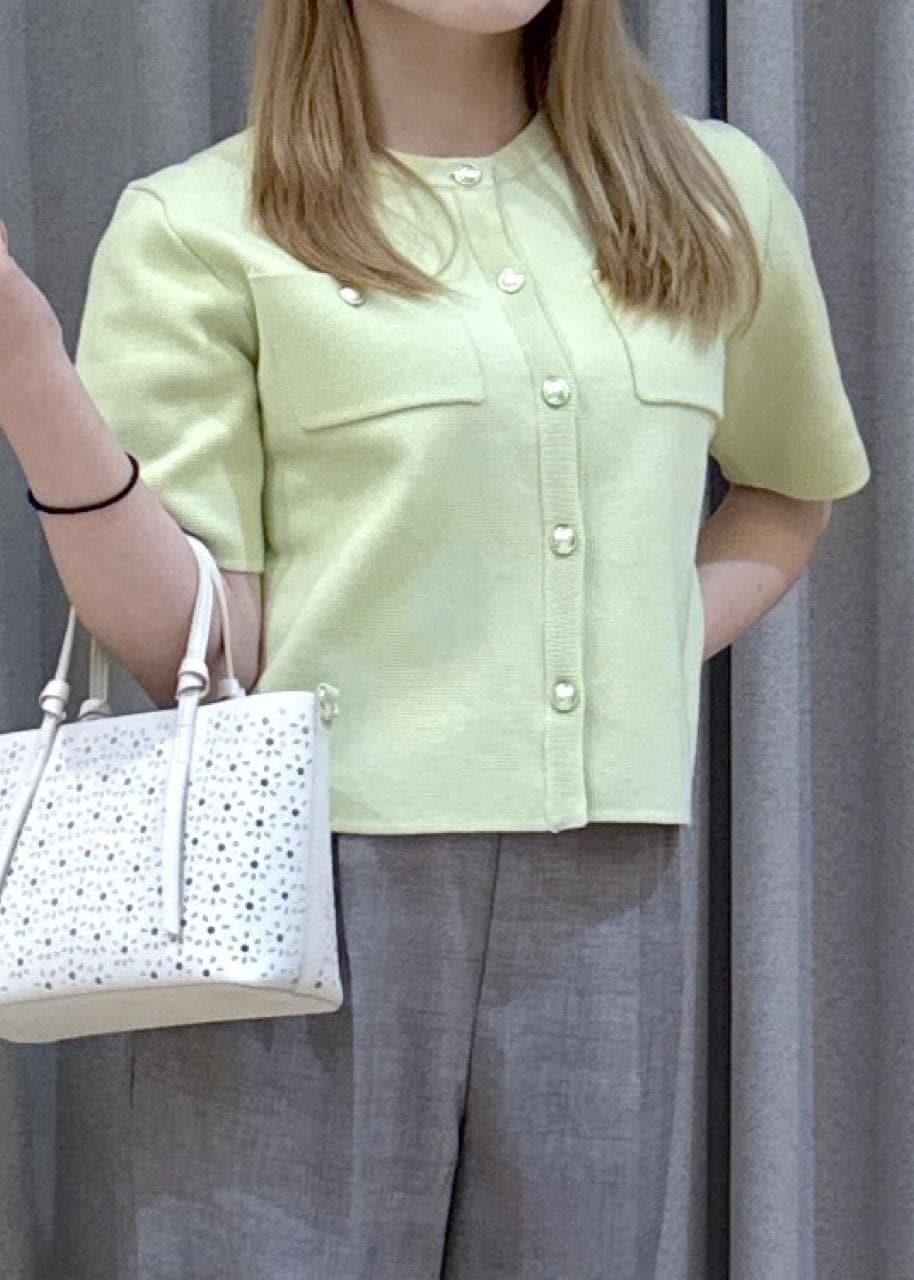ROPÉ PICNICミラノリブ金ボタン半袖カーディガンキミドリ / F¥5,489レビュー型崩れがしにくく、綺麗なシルエットにしてくれて、