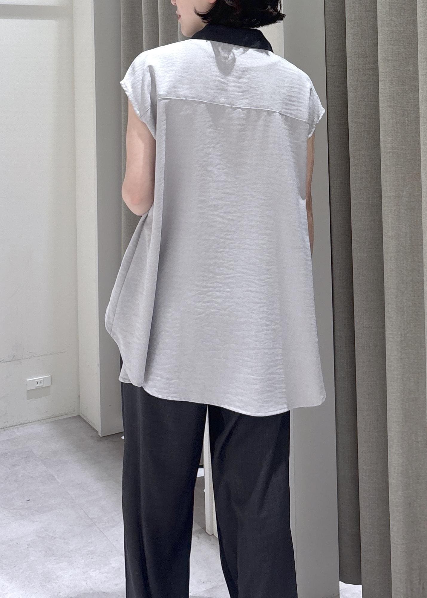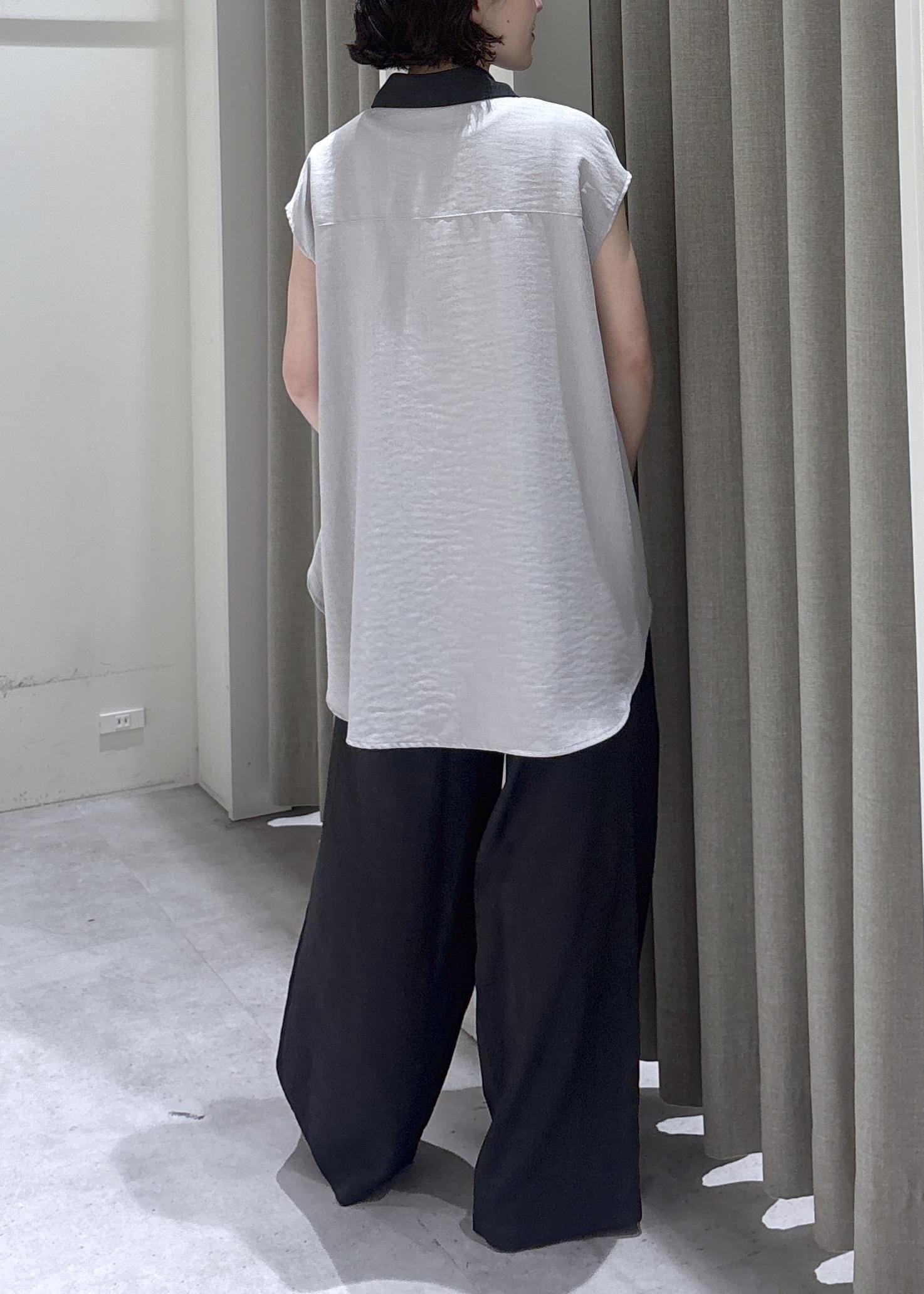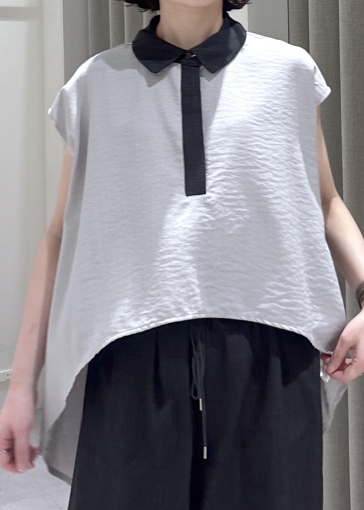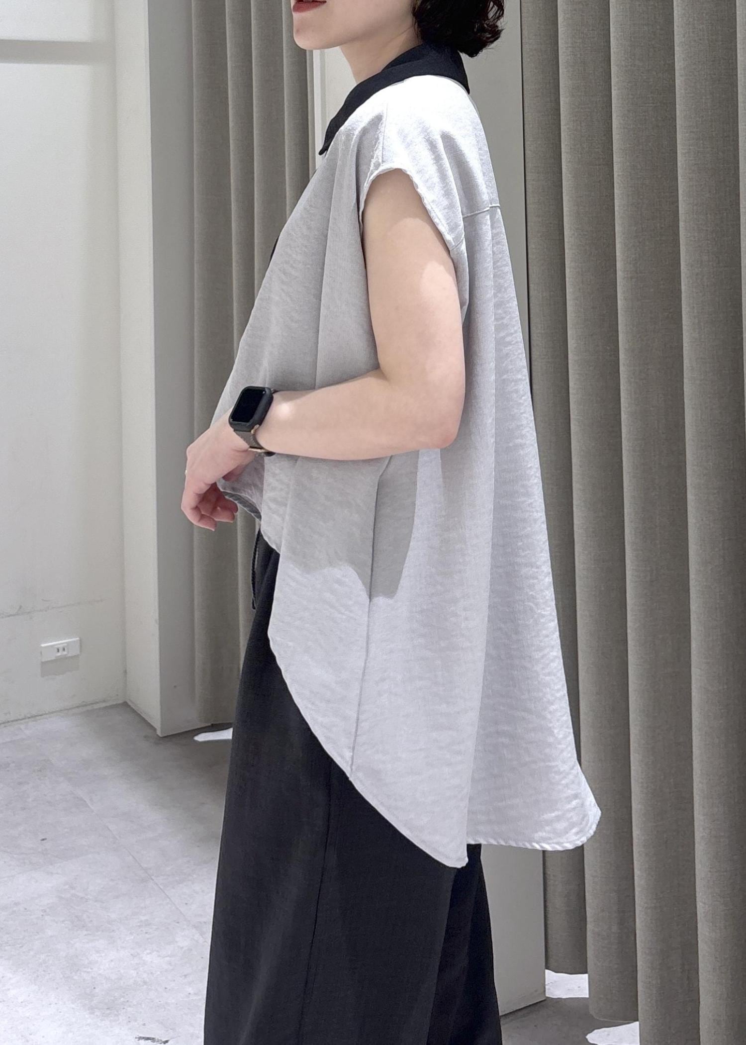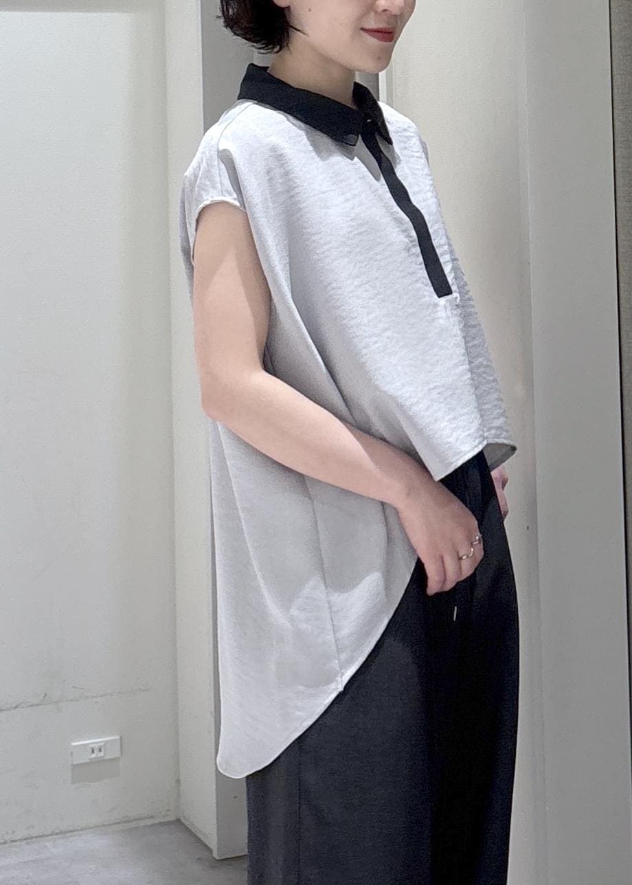 LE CERCLE par ropéタンブラーオックスバイカラー半袖シャツグレー / F¥8,690レビュー大人気シリーズからバイカラーが目を惹く大人ブラウスがでました!
