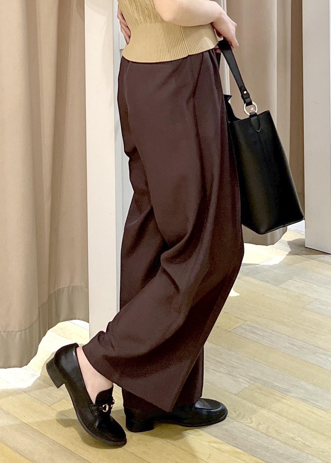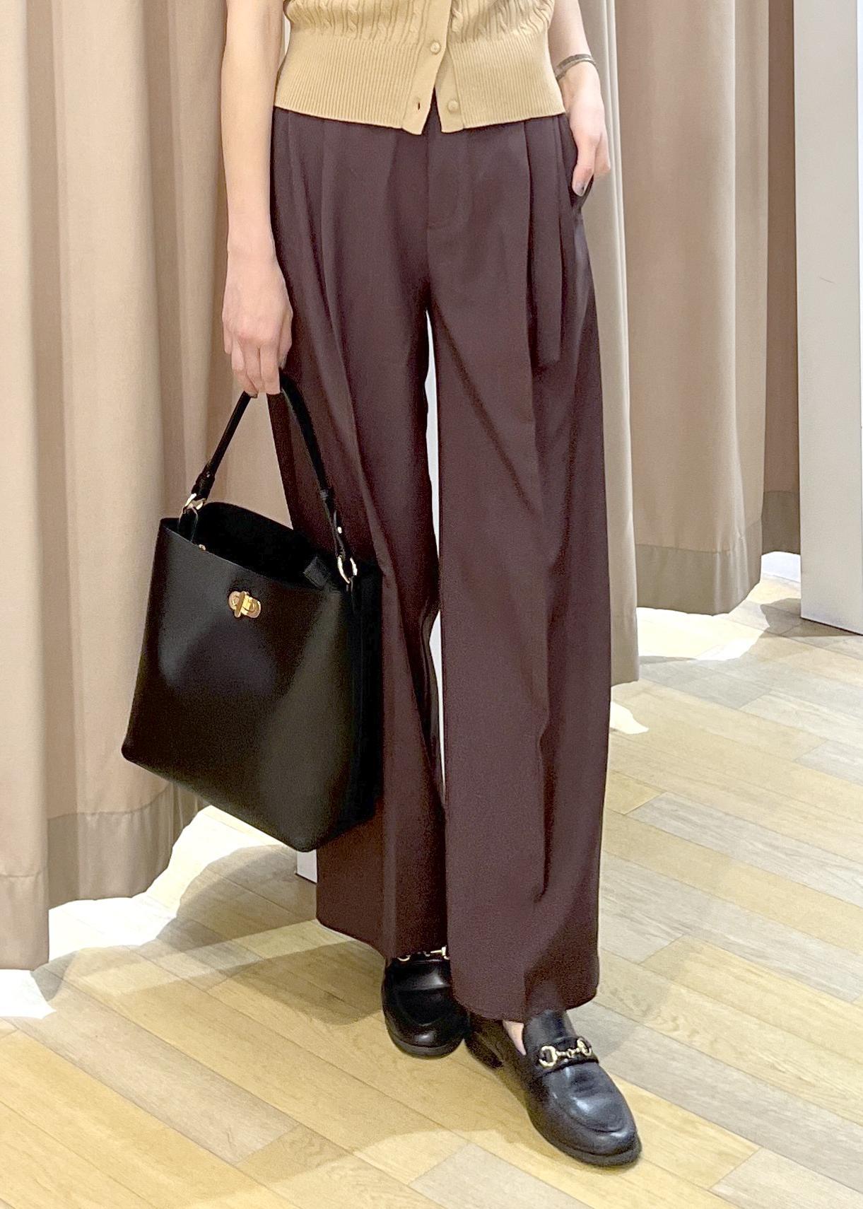 予約VISベルトディティールタックワイドパンツ/イージーケア・接触冷感ダークブラウン / M¥6,589レビュー少し光沢感があり同素材のベルト付きワイドパンツです。