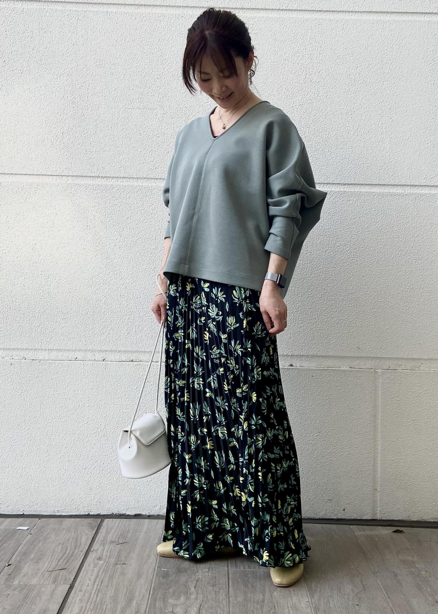 マキシ丈なので、サンダルで女性らしくコーディネートするのもお勧めですが、スニーカーでカジュアルダウンさせるのも、これからの季節には良いと思います!
