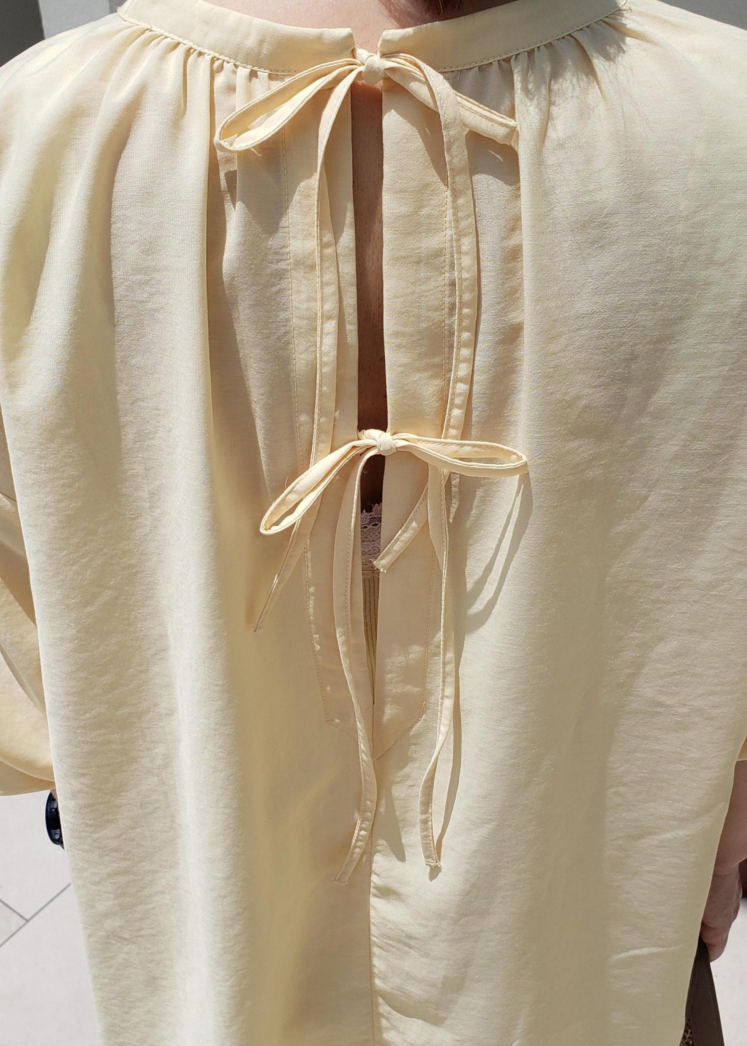 バックスリットにリボンがついた可愛らしいブラウスです。
