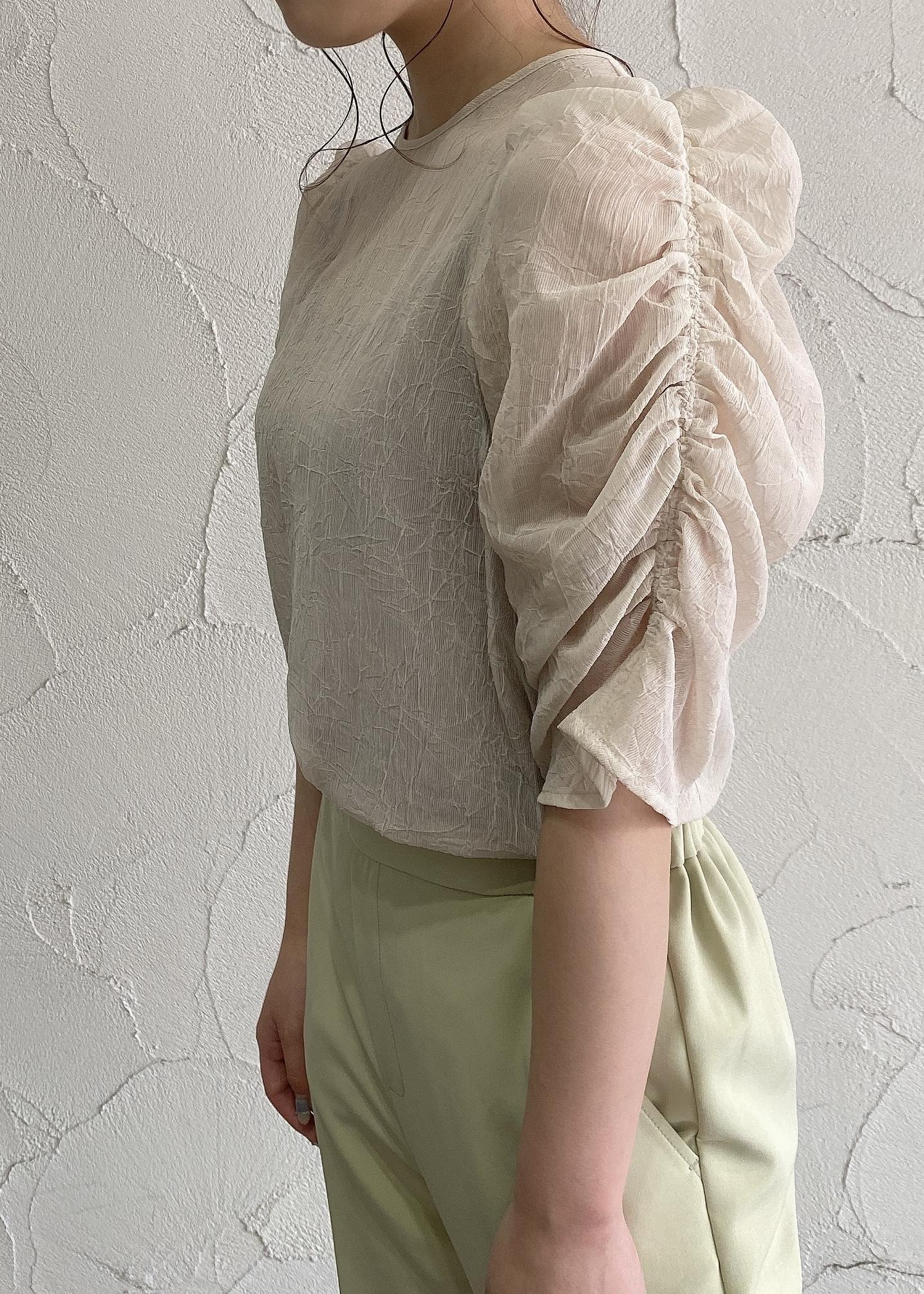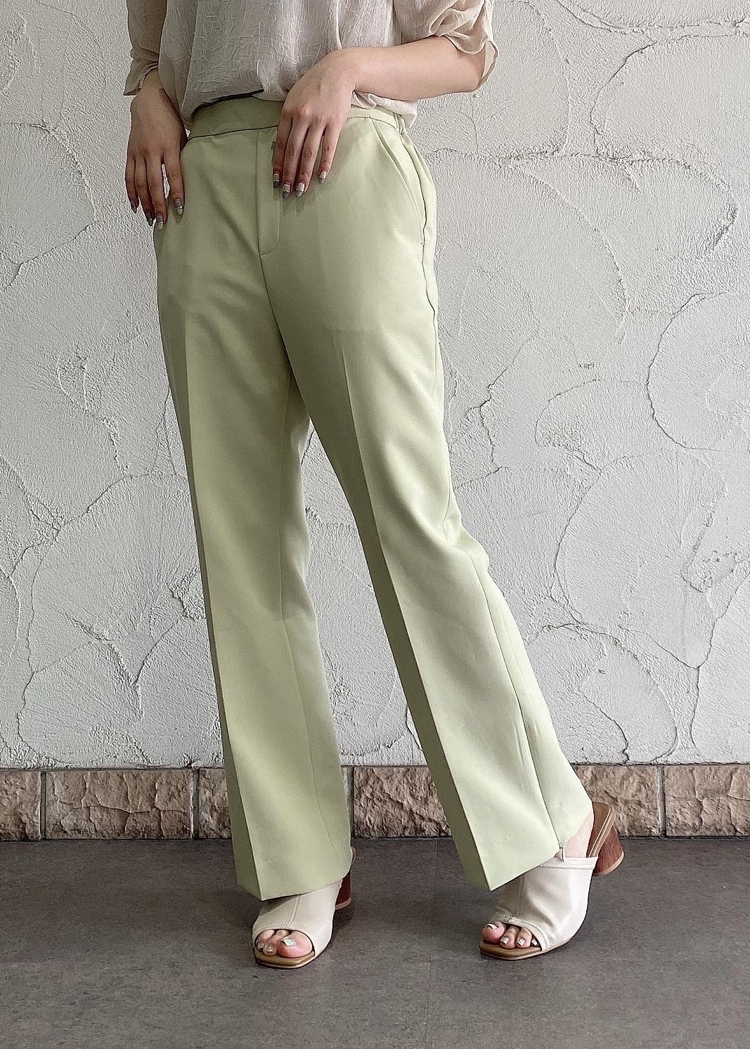 袖が可愛らしいブラウスにカラーパンツを合わせたトレンド感もある女性らしい印象のスタイリングです。 透け感がとても夏らしいです!