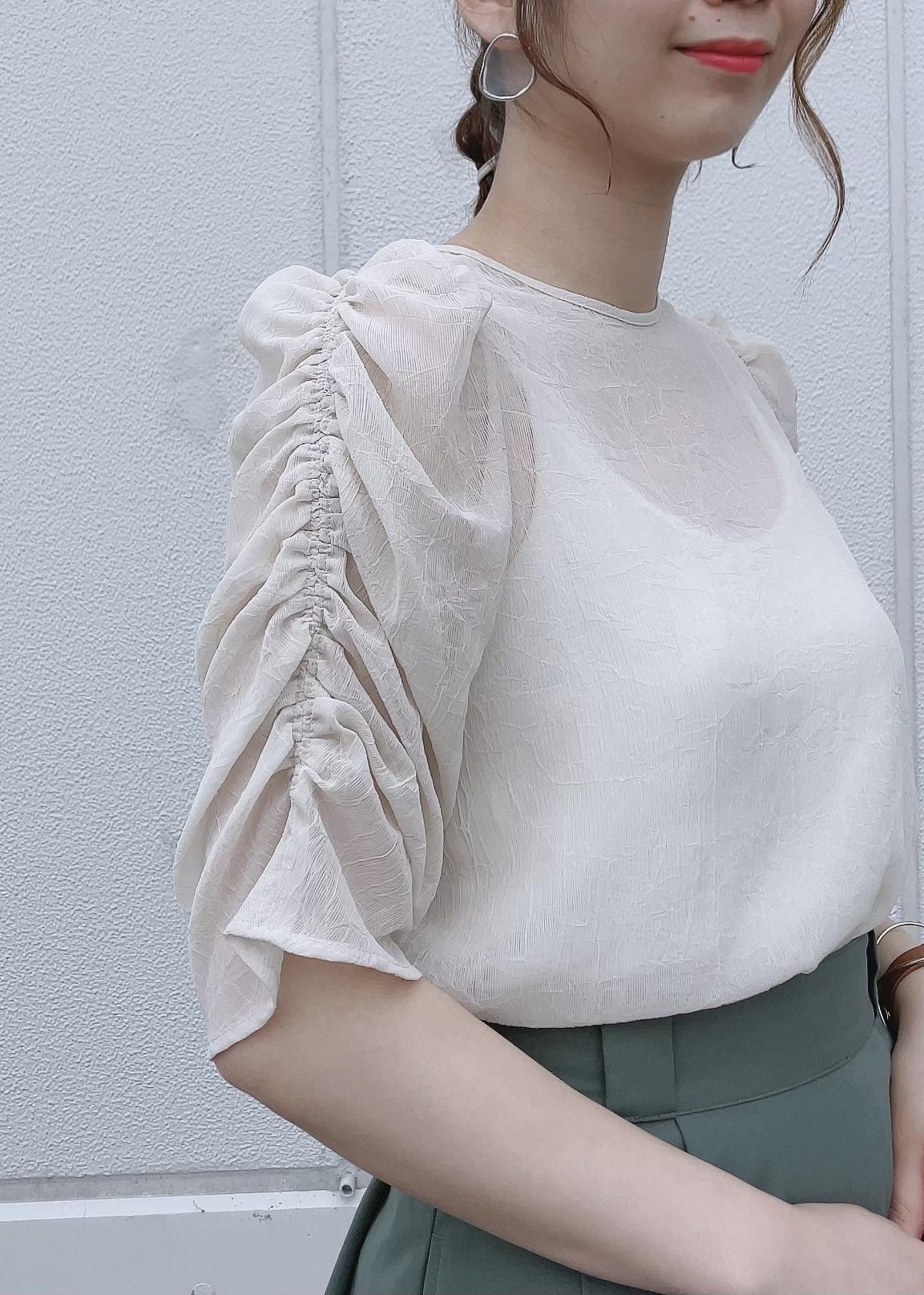 シアー感たっぷりのキレイめなブラウスに、カーキのフレアスカートを合わせて大人っぽいコーディネートにしました。 スカートの色はカーキを選びましたが、フレアシルエットなのでカジュアルダウンしすぎず丁度いいバランス感になります。 シンプルなカラーのコーディネートなので、小物でオレンジをプラスしました◎