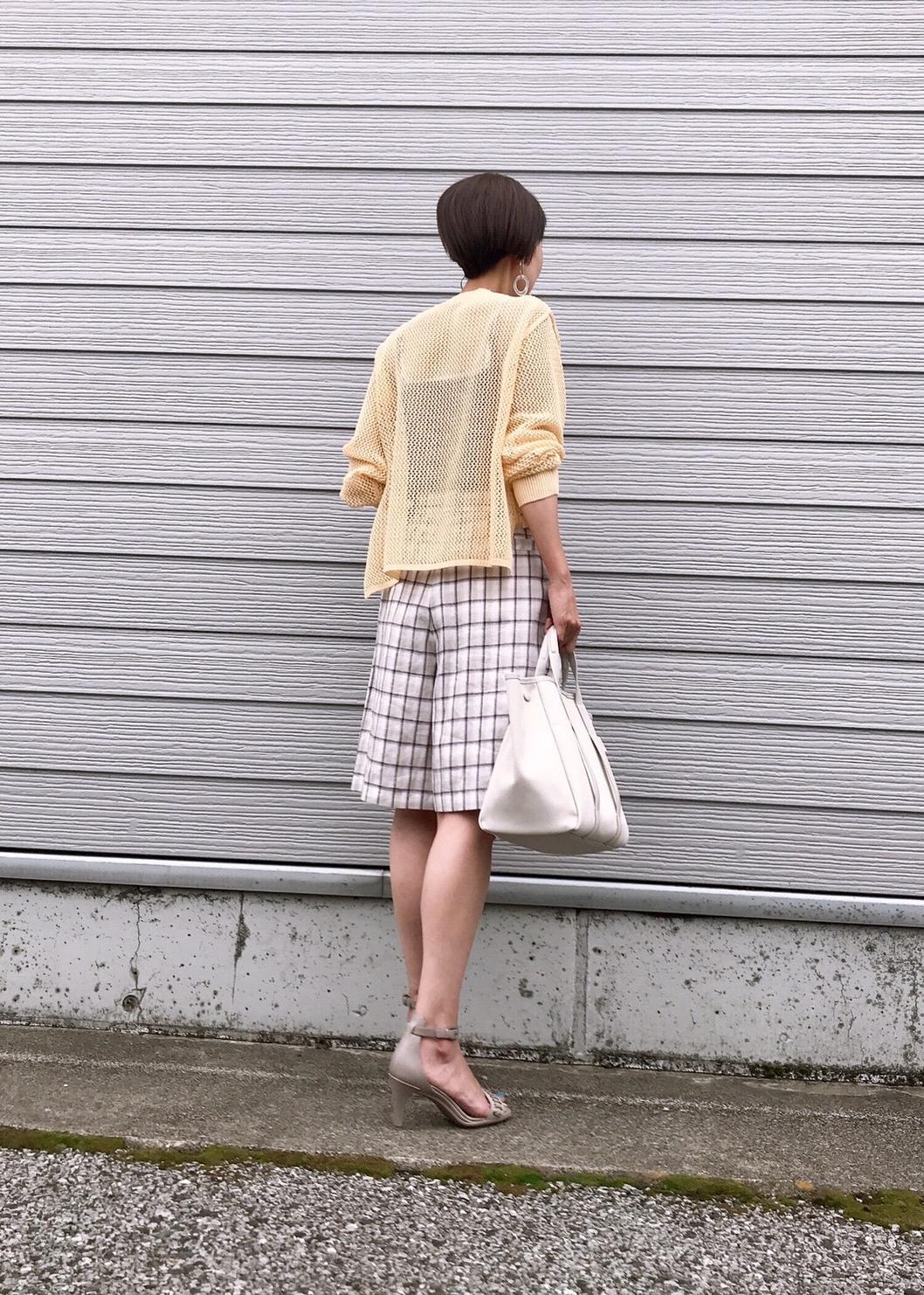 透け感のあるニットと合わせ夏らしいコーディネートにしました。