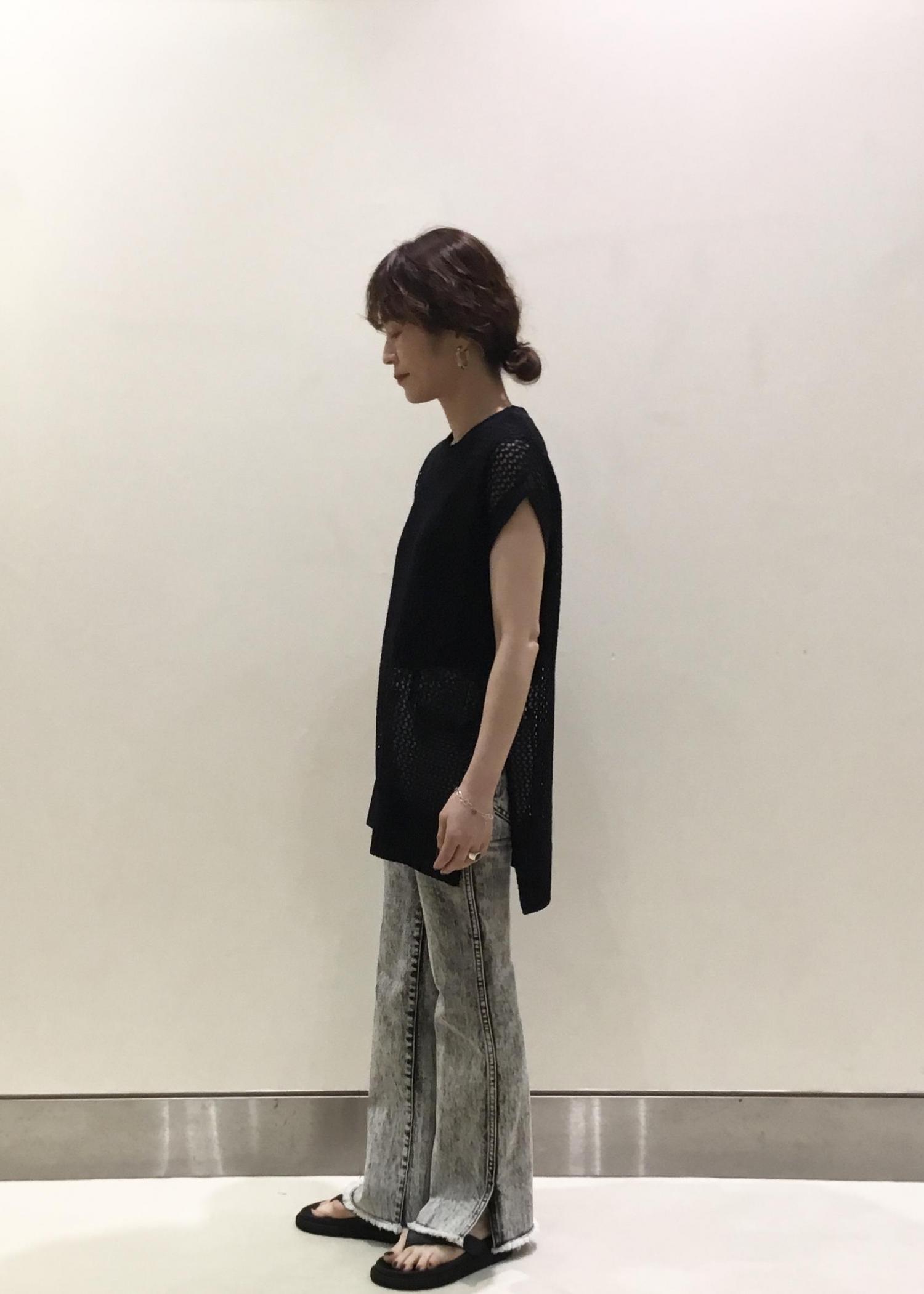 インナーとのレイヤードスタイルで透け感を楽しめるメッシュチュニックです。