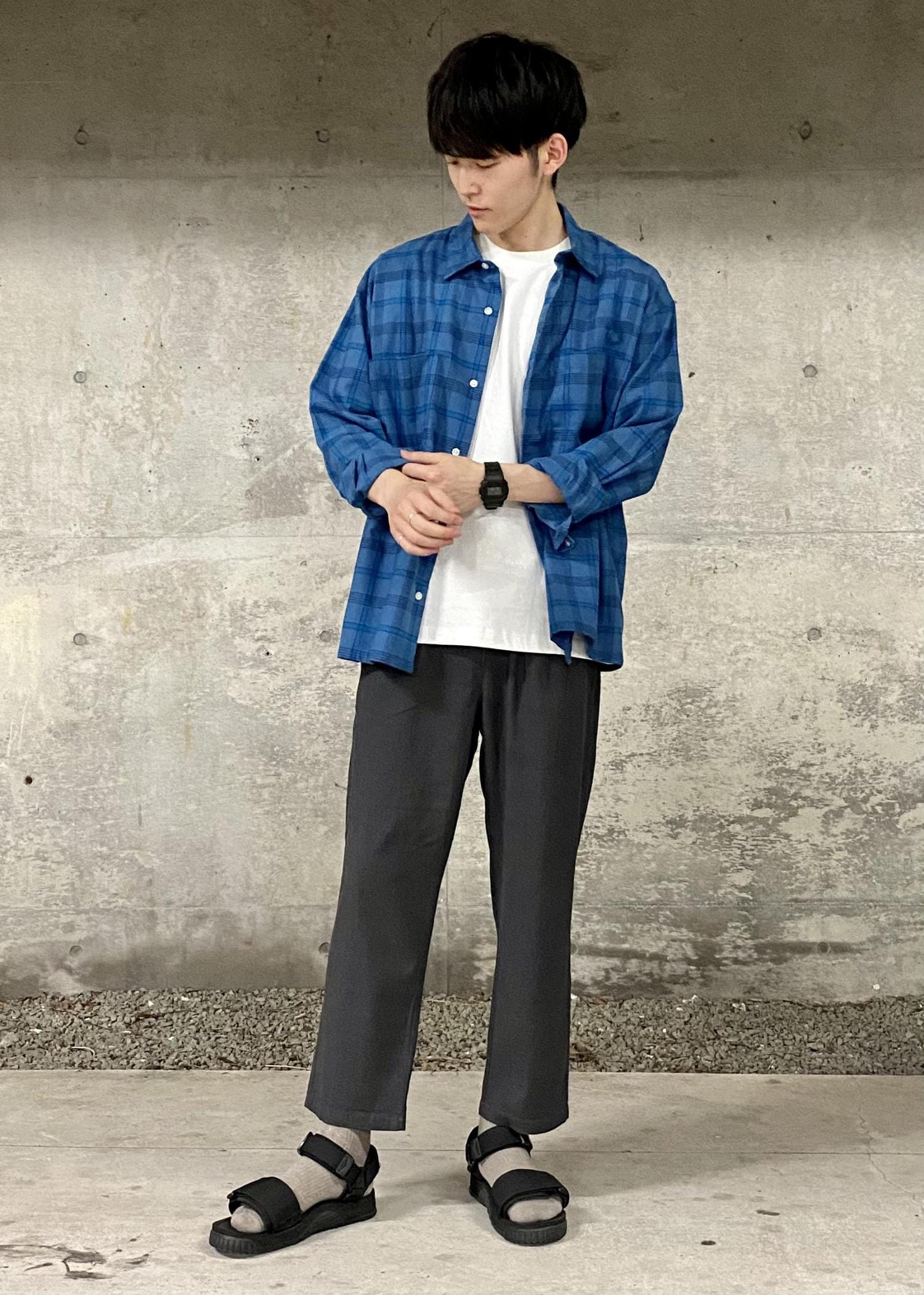 コットンTとリネンパンツのシンプルな合わせに、シャツをたすき掛けしたコーデ。温度調節もしやすいのでおすすめのスタイルです。 身につける物が少なくなりがちな夏は、アイテムの使い方をちょっと変えると普段と違う雰囲気が出て◎