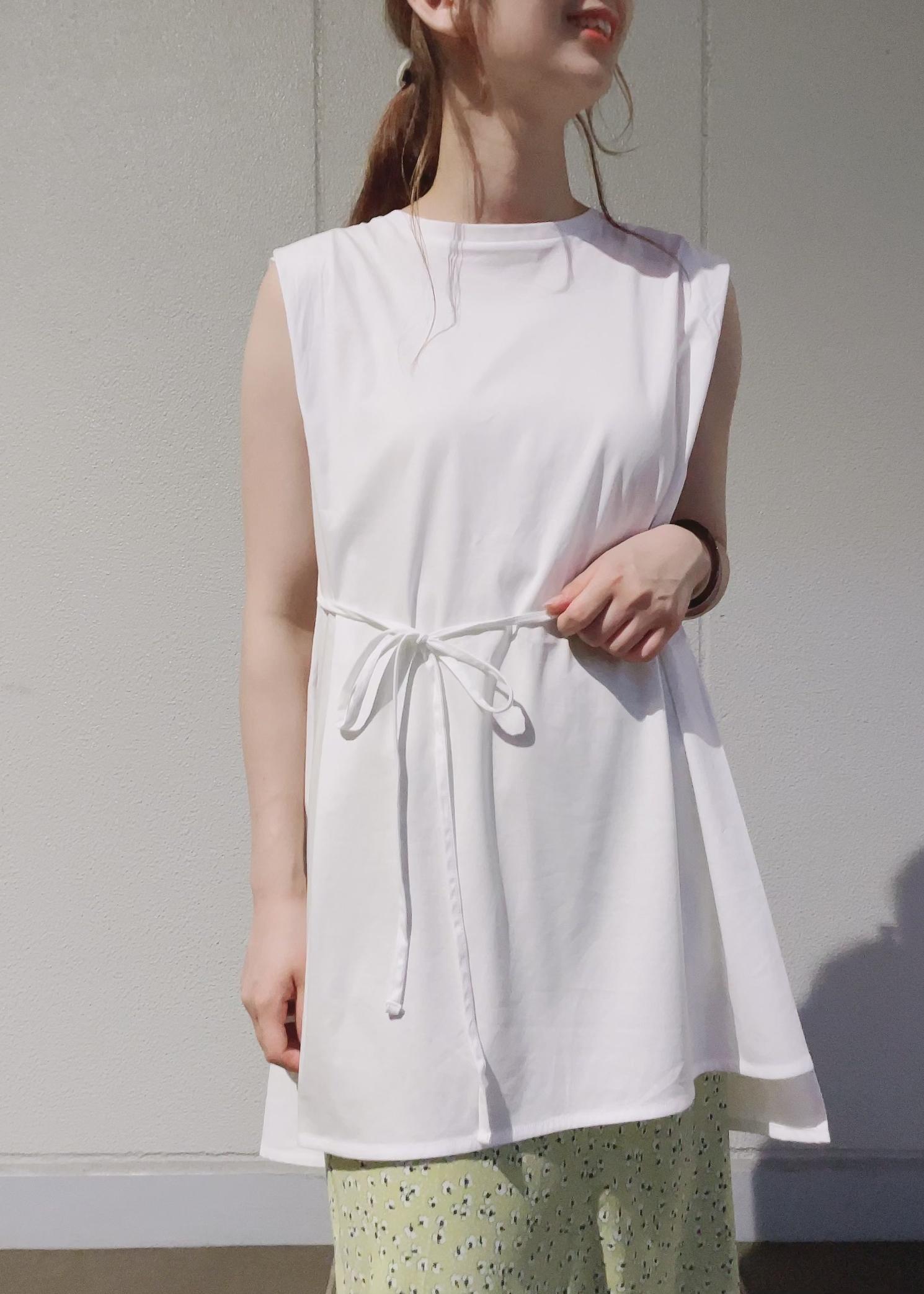 長めのトップスをあえて外に出すと一気に今年らしくなります。