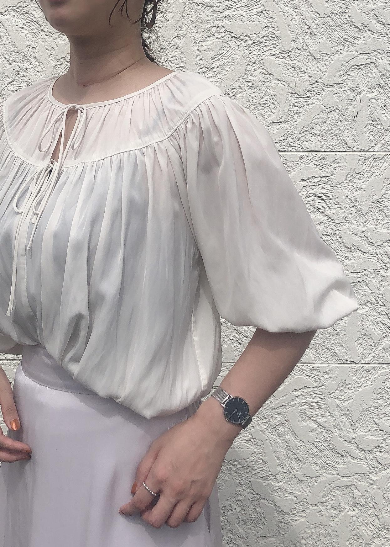 涼しげなホワイトコーデ。 お袖のあるブラウスは秋まで長く着用いただけます。 足元はブラックのパンプスで締め色を◉