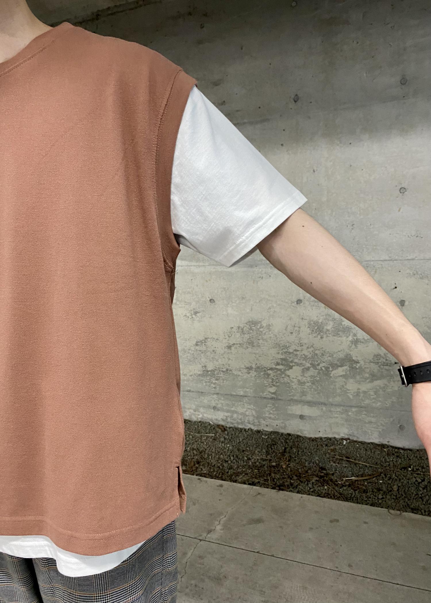 オレンジのニットベスト×チェックパンツで秋先取りなコーデにしてみました。 トップスのインナーはコットン100%で滑らかな着心地、ベストも鹿の子素材でサラッと着用いただけます。