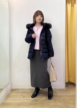 【GREEN DOWN/グリーンダウン】ファー付きダウンミドル丈コート/リンクコーデ