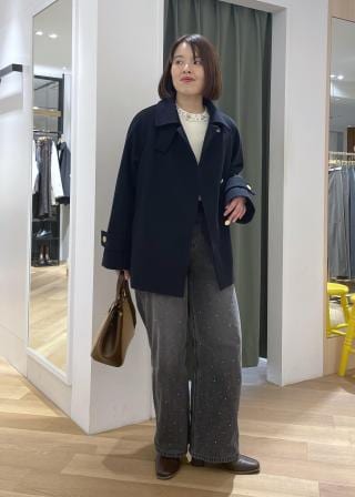ジャージーメルトンシリーズ 金ボタンミドル丈コート/リンクコーデ