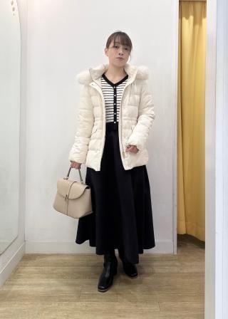 【GREEN DOWN/グリーンダウン】ファー付きダウンミドル丈コート/リンクコーデ