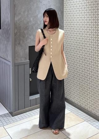 【cahoさんコラボ】低身長・小柄さんサイズ エアリーリネンライク タックワイドパンツ