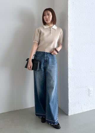 ダブルカラー半袖ポロニットトップス/イージーケア・WEB限定カラー