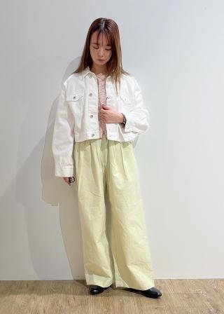 ・清潔感のあるホワイトカラーのデニムジャケット。