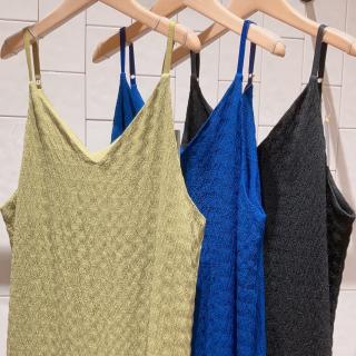 ・表情のあるシャーリングカット素材のキャミソール型ワンピース。