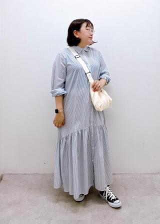 ボリュームストライプシャツワンピース/リンクコーデ