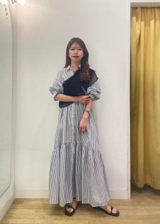 ・ラウンドを描く切り替えで、裾にボリュームを出したシャツワンピース。