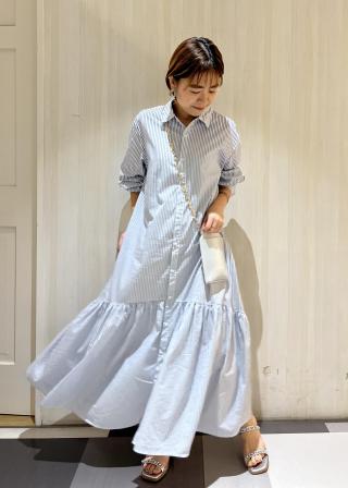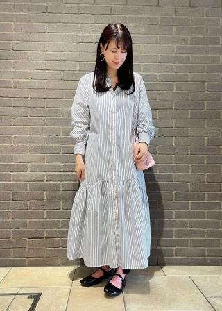 ・ラウンドを描く切り替えで、裾にボリュームを出したシャツワンピース。