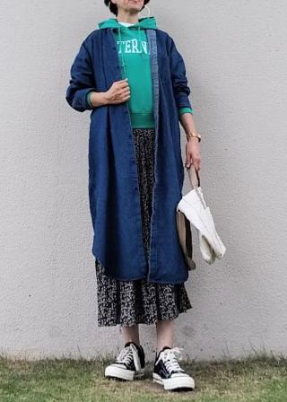 ・ロングスカートを合わせたときには、上からベルトを巻くとメリハリが出る。