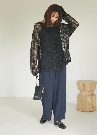 ・ルーズに着こなす、ゆったりとしたメッシュ編みの長袖クルーネックニット。