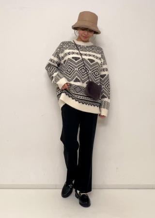 ・冬らしいジャカード柄のビッグニットプルオーバー。