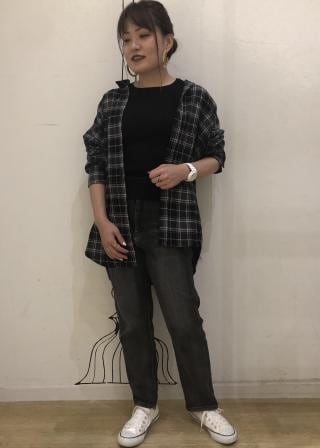 【オススメコーデ】流行り問わず大人気のネルシャツはビックシルエットで可愛いですね!ロンTやサロペットと併せて羽織りや、襷掛けしてコーデのポイントに‼︎