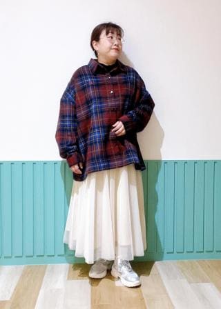 ・ふんわり起毛した、シャギーチェックの長袖シャツ。
