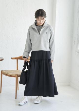 ※同シリーズの「ワンポイント刺繍裏毛ハーフジップワンピース」はこちら。