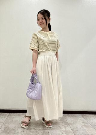 ・デニムスカートに合わせて自然なカジュアルコーデに。