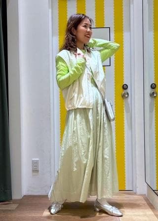 ・あえてワンピースに重ねてみるのも意外性があっておすすめ。
